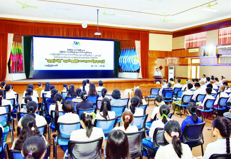နိုင်ငံခြားရေးဝန်ကြီးဌာနတွင် တာဝန်ထမ်းဆောင်လျက်ရှိသော နိုင်ငံ့ဝန်ထမ်းများအနေဖြင့် ပြည်သူ့စစ်မှုထမ်းဥပဒေနှင့်ပတ်သက်၍ သိကောင်းစရာများကို သိရှိနားလည်စေရန်၊ နိုင်ငံ့ဝန်ထမ်းများအနေဖြင့် လိုအပ်သည်များ ပံ့ပိုးကူညီဆောင်ရွက်နိုင်စေရန်၊ နိုင်ငံတကာ သံတမန်များအား စစ်မှုထမ်းဥပဒေနှင့် ပတ်သက်သော သတင်းအမှန်များကို မျှဝေပေးနိုင်စေရန်၊ ပြည်သူ့စစ်မှုထမ်းဥပဒေနှင့်ပတ်သက်၍ သတင်းအမှားများကြောင့် ပြည်သူများအကြား ဖြစ်ပေါ်လျက်ရှိသော စိုးရိမ်စိတ်များကို လျော့ကျစေရေး ထပ်ဆင့်ရှင်းလင်းနိုင်စေရန် ရည်ရွယ်၍ သိကောင်းစရာများ ရှင်းလင်းပြောကြားသည့်အခမ်းအနားကို ယနေ့ မွန်းလွဲပိုင်းတွင် နိုင်ငံခြားရေးဝန်ကြီးဌာန လောကနတ်ခန်းမ၌ ကျင်းပသည်။