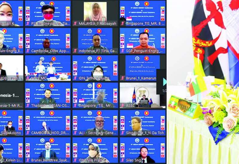 မြန်မာနိုင်ငံက အိမ်ရှင်အဖြစ် လက်ခံကျင်းပသည့် (၉) ကြိမ်မြောက် အာဆီယံလုပ်ငန်းခွင် ဘေးအန္တရာယ် ကင်းရှင်းရေးနှင့် ကျန်းမာရေးကွန်ရက် ညီလာခံနှင့် (၄)ကြိမ်မြောက် အာဆီယံလုပ်ငန်းခွင် ဘေးအန္တရာယ်ကင်းရှင်းရေးနှင့် ကျန်းမာရေးကွန်ရက်ဆု ချီးမြှင့်ခြင်းအခမ်းအနားကို ယနေ့နံနက်ပိုင်းတွင် နေပြည်တော်ရှိ အလုပ်သမားဝန်ကြီးဌာန အစည်း အဝေးခန်းမ၌ ကိုဗစ်-၁၉ ရောဂါ ကာကွယ်ရေး စည်းမျဉ်းစည်းကမ်းများနှင့်အညီ Video Conference စနစ်ဖြင့် ကျင်းပသည်။