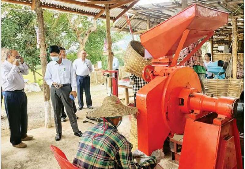 သမဝါယမနှင့်ကျေးလက်ဖွံ့ဖြိုးရေးဝန်ကြီးဌာန ဒုတိယဝန်ကြီး ဦးမြင့်စိုးသည် ဇူလိုင် ၇ရက် နံနက်ပိုင်းက တာဝန်ရှိသူများနှင့်အတူ ရှမ်းပြည်နယ် (တောင်ပိုင်း) ဒေသဖွံ့ဖြိုးရေးလုပ်ငန်းများ ဆောင်ရွက်နေမှုကို ကွင်းဆင်းစစ်ဆေးသည်။