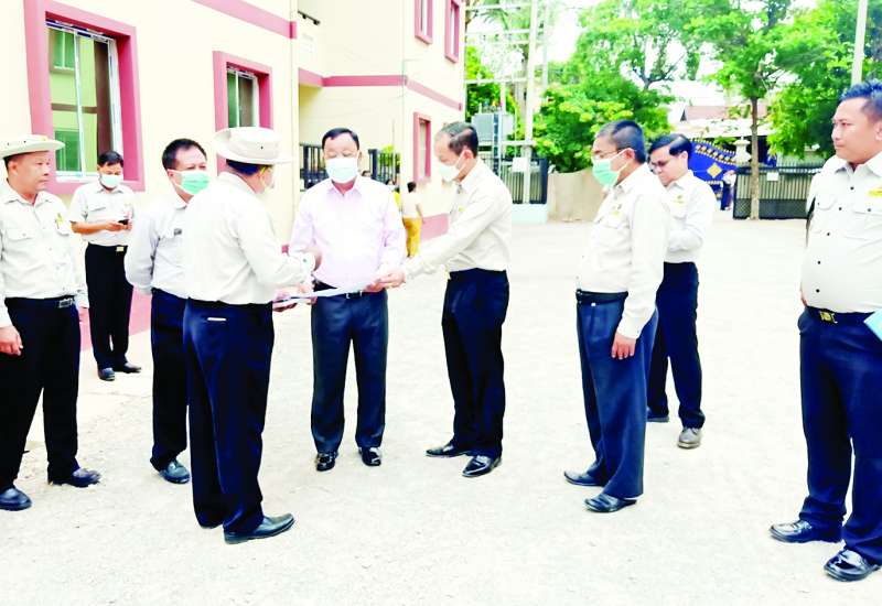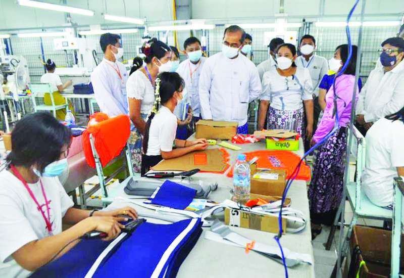 အလုပ်သမားဝန်ကြီးဌာန ဒုတိယဝန်ကြီး ဦးဝင်းရှိန်သည် ယနေ့ နံနက်ပိုင်းတွင် လှိုင်သာယာစက်မှုဇုန်ရှိ CMP အထည်ချုပ်စက်ရုံများဖြစ်သည့် Nadal Pacific Apparel Co.,Ltd ၊ Sioen Myanmar Limited၊ Thong Thai Textile-2 (Myanmar) Co.,Ltd စက်ရုံများသို့ သွားရောက်ပြီး လုပ်ငန်းခွင်အတွင်း ကိုဗစ်-၁၉ ရောဂါ ကာကွယ်တားဆီးမှုများ၊ စက်ရုံ၊ အလုပ်ရုံများဆိုင်ရာ လိုက်နာဆောင်ရွက်ရမည့် ညွှန်ကြားချက်များနှင့် လုပ်ငန်းခွင် ဘေးအန္တရာယ်ကင်းရှင်းရေးနှင့် ကျန်းမာရေးဆိုင်ရာ လမ်းညွှန်ချက်များနှင့်အညီ အကောင်အထည်ဖော် ဆောင်ရွက်မှုကို ကြည့်ရှုစစ်ဆေးသည်။