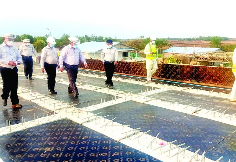 ဆောက်လုပ်ရေးဝန်ကြီးဌာန ဒုတိယဝန်ကြီး ဦးဝင်းဖေသည် ယနေ့နံနက်ပိုင်းတွင် ရန်ကုန်တိုင်း ဒေသကြီး ပုလဲမြို့သစ် နွယ်ခွေယန္တရားဝင်းသို့ ရောက်ရှိပြီး စက်၊ ယာဉ်၊ ယန္တရားများ လုံခြုံရေး အထူးဂရုပြုရန်၊ ကျူးကျော်တဲများ ချဉ်းကပ်မှု မရှိစေရေး ဝန်ထမ်းအင်အား လုံလောက်စွာ စုဖွဲ့ တာဝန်ပေးအပ်ရန် မှာကြားကာ လုံခြုံရေးဂိတ်၊ ပစ္စည်းဟောင်း ဂိုဒေါင်နေရာများ၊ စက်ပြင်/စက်မောင်းဝန်ထမ်းလိုင်းခန်းနေရာနှင့် စက်ယာဉ် ယန္တရားများ ထိန်းသိမ်းထားရှိမှုနှင့် နွယ်ခွေ ယန္တရားဝင်း ပတ်လမ်းတစ်လျှောက် လိုက်လံကြည့်ရှု စစ်ဆေးသည်။