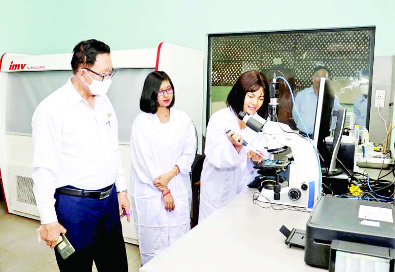 စိုက်ပျိုးရေး၊ မွေးမြူရေးနှင့် ဆည်မြောင်းဝန်ကြီးဌာန ဒုတိယဝန်ကြီး ဒေါက်တာအောင်ကြီးသည် တာဝန်ရှိသူများနှင့်အတူ ယမန်နေ့ နံနက်ပိုင်းက မွေးမြူရေးနှင့်ကုသရေးဦးစီးဌာန တိရစ္ဆာန်ရောဂါ ရှာဖွေရေးဓာတ်ခွဲခန်း(ရန်ကုန်)၏ တိရစ္ဆာန်ကူးစက်ရောဂါများ စူးစမ်းရှာဖွေခြင်းနှင့် အတည်ပြုပေးခြင်းလုပ်ငန်းများ၊ တိရစ္ဆာန်နှင့် တိရစ္ဆာန်ထွက်ပစ္စည်းများ ကျန်းမာရေးထောက်ခံချက်လက်မှတ် ထုတ်ပေးခြင်းလုပ်ငန်းများ၊ ရောဂါတုံ့ပြန်နိုင်မှု တိုင်းတာပေးခြင်း၊ ရောဂါစစ်ဆေးရန် ကွင်းဆင်းနမူနာကောက်ယူခြင်း၊ ရောဂါသုတေသနပြု ဆောင်ရွက်ခြင်းနှင့် ကိုဗစ်-၁၉ ရောဂါ စစ်ဆေးရေးလုပ်ငန်းများကို ကြည့်ရှုစစ်ဆေးပြီး တိရစ္ဆာန်ကျန်းမာရေးလုပ်ငန်းများ တိုးချဲ့ဆောင်ရွက်ရန် လိုအပ်ချက်များနှင့် နိုင်ငံတကာအဆင့်မီ ဓာတ်ခွဲခန်းအဆင့်(ISO/IEC 17025:2017)ရရှိရေးတို့ကို မှာကြားသည်။