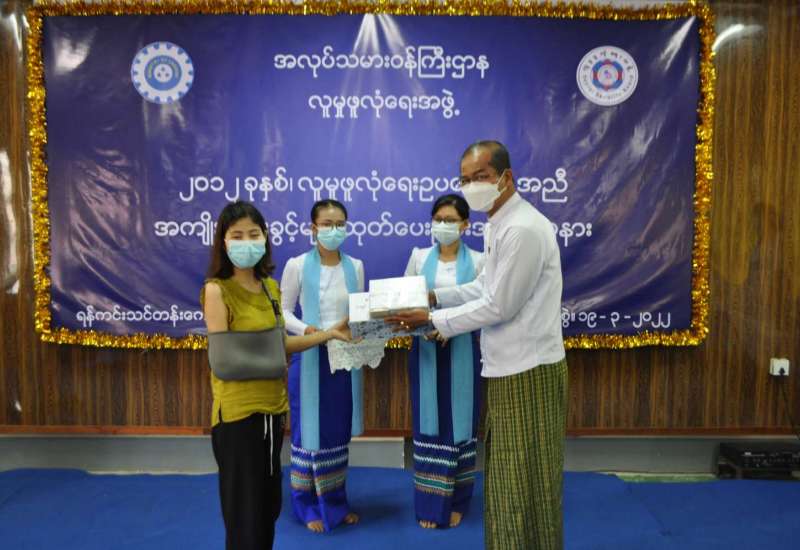 ၂၀၁၂ ခုနှစ်၊ လူမှုဖူလုံရေးဥပဒေနှင့်အညီ အလုပ်ခွင်ထိခိုက်မှုကြောင့်သေဆုံးခြင်း၊ အမြဲတမ်း မသန်စွမ်းဖြစ်ခြင်းတို့အတွက် ကျန်ရစ်သူအကျိုးခံစားခွင့်နှင့် ငွေလုံးငွေရင်း ခွင့်ပြုထုတ်ပေးသည့် အခမ်းအနားကို ယနေ့နံနက်ပိုင်းက ရန်ကုန်တိုင်းဒေသကြီး၊ ကျွမ်းကျင်မှု လေ့ကျင့်ရေးသင်တန်း ကျောင်း(ရန်ကင်း)၌ ကျင်းပရာ အလုပ်သမားဝန်ကြီးဌာန၊ ဒုတိယဝန်ကြီး ဦးဝင်းရှိန်နှင့် ရန်ကုန်တိုင်းဒေသကြီးအစိုးရအဖွဲ့၊ တာဝန်ရှိသူများ၊ အလုပ်သမားဝန်ကြီးဌာန၊ ရန်ကုန်တိုင်းဒေသကြီး တာဝန်ခံများ တက်ရောက် ကြသည်။