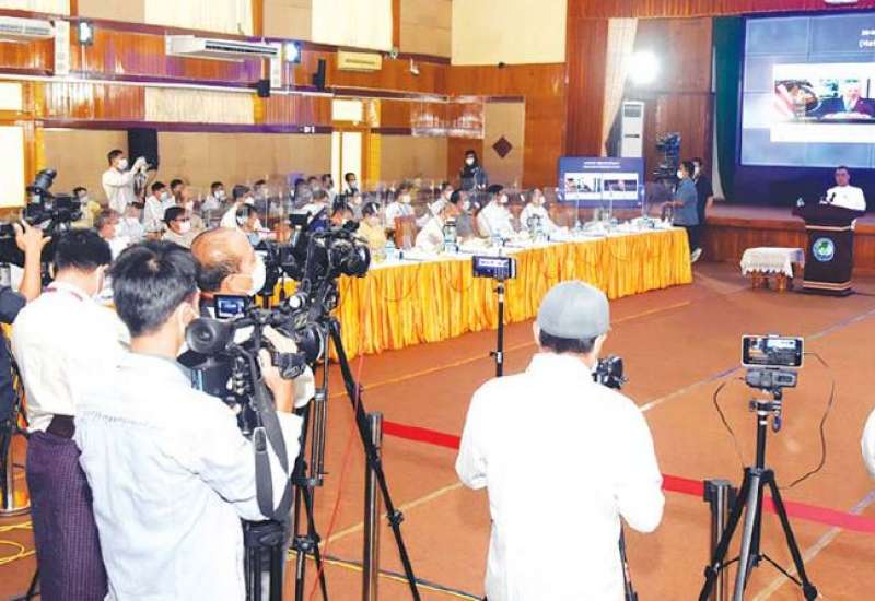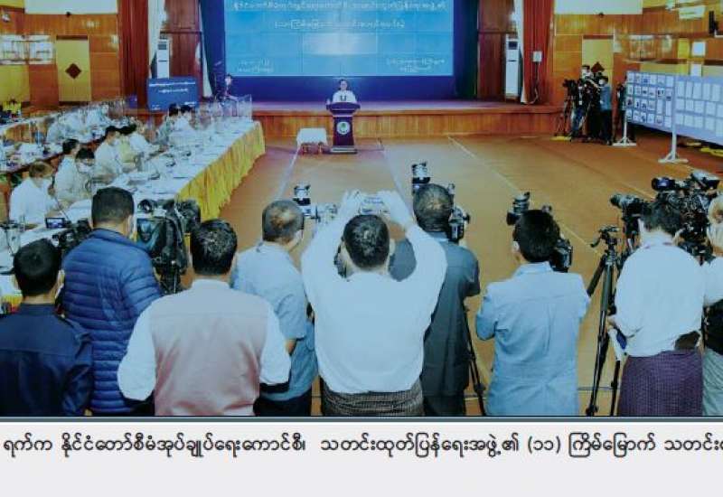 နိုင်ငံတော်စီမံအုပ်ချုပ်ရေးကောင်စီ၊ သတင်းထုတ်ပြန်ရေးအဖွဲ့၏ (၁၁)ကြိမ်မြောက် သတင်းစာရှင်း လင်းပွဲကို ယနေ့မွန်းလွဲပိုင်းတွင် ပြန်ကြားရေးဝန်ကြီးဌာန၊ ဝန်ကြီးရုံးစုပေါင်း အစည်းအဝေးခန်းမ၌ ကျင်းပပြုလုပ်သည်။ အဆိုပါသတင်းစာရှင်းလင်းပွဲတွင် နိုင်ငံတော ်စီမံအုပ်ချုပ်ရေးကောင်စီ သတင်း ထုတ်ပြန်ရေးအဖွဲ့၏ အဖွဲ့ခေါင်းဆောင် ဗိုလ်ချုပ် ဇော်မင်းထွန်း၊ ပြည်ထောင်စုရွေးကောက်ပွဲ ကော်မရှင်အဖွဲ့ဝင် ဦးခင်မောင်ဦးနှင့် ဌာနဆိုင်ရာမှ တာဝန်ရှိသူများက သတင်းမီဒီယာများ၏ သိရှိလိုသည့်မေးမြန်းမှုများကို ပြန်လည်ဖြေကြားသည်။