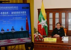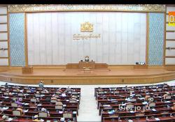 ပြည်သူ့လွှတ်တော် ဥက္ကဋ္ဌ ဦးတီခွန်မြတ်နှင့် တတိယအကြိမ်လွှတ်တော် ပထမပုံမှန်အစည်း အဝေး တက်ရောက်ကြမည့် ပြည်သူ့လွှတ်တော်ကိုယ်စားလှယ်များအား ယနေ့ မွန်းလွဲပိုင်းတွင် နေပြည်တော် လွှတ်တော်အဆောက်အဦရှိ ထမင်းစားခန်းမဆောင်၌ ကျန်းမာရေးဝန်ထမ်းများက ကိုဗစ်-၁၉ ကာကွယ်ဆေး COVISHIELD ထိုးနှံပေးကြသည်။