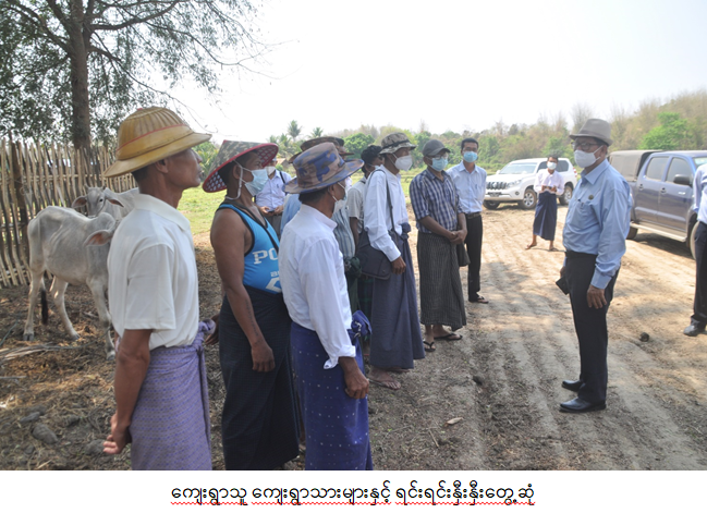 ကြည့်ရှုစစ်ဆေးစဉ် ဒုတိယဝန်ကြီး က ကျေးရွာသူ ကျေးရွာသားများနှင့် ရင်းရင်းနှီးနှီး တွေ့ဆုံ၍ နေပြည်တော် လယ်ဝေးမြို့မှ (၁၂) မိုင်ခန့်အကွာ ၊ ပန်းညိုစမ်းကျေးရွာအနီးရှိ ချောင်းမ ငယ် ရေလှောင်တမံနှင့် ရုံးပင်သစ်တောကြိုးဝိုင်းဧရိယာဝန်းကျင်ရှိ ပန်းညိုစမ်း၊ ကြိမ်ဖန်၊ အောင်းကြီးကုန်း၊ ရွာမ၊ ရွာသစ်၊ ကနစိုး၊ မဒေါ့ပင်၊ ပေတုန်းမြောင်၊ ကန်လှ စသည့် ကျေးရွာ (၉)ရွာတွင် အိမ်ထောင်စု ၂၃၀၀ ကျော် နေထိုင်ကြပြီး စိုက်ပျိုးမွေးမြူရေး လုပ်ငန်းများ လုပ်ကိုင်လျက်ရှိကြရာ အဆိုပါလုပ်ငန်းများတွင် ခေတ်မီနည်းပညာများ အသုံးပြုလုပ်ကိုင် လာနိုင်ကြစေရန်နှင့် အခြားဝင်ငွေတိုးလုပ်ငန်းများ လုပ်ကိုင်ဆောင်ရွက် နိုင်ရန်၊ မြေယာ အသုံးပြုမှုအတွက် ဥပဒေနှင့် အညီအသုံးပြုခွင့်ရရှိစေရန်၊ ကျေးလက်လမ်း တံတားများ ဖွံ့ဖြိုးလာ စေရန်နှင့် လယ်ယာသုံး စက်ကိရိယာ အသုံးပြုမှု ပိုမိုဖွံ့ဖြိုးလာစေရန် စီမံဆောင်ရွက်ပေးသွား မည်ဖြစ်ကြောင်း၊ ဒေသ၏ စိုက်ပျိုးမွေးမြူရေးဆိုင်ရာများ၊ လူမှုရေး ကျန်းမာရေးဆိုင်ရာများကို မေးမြန်းဆွေးနွေးပြီး ချောင်းမငယ်ဆည်ဧရိယာအတွင်း သီးနှံ သစ်တောရောနှောစိုက်ခင်း အကောင်အထည်ဖော် ဆောင်ရွက်မည့် အခြေအနေများနှင့် ကျေးရွာသူ ကျေးရွာသားများ၏ ပူးပေါင်း ဆောင်ရွက်ပေးရန် လိုအပ်ချက်များ ကို ဆွေးနွေးခဲ့ကြသည်။