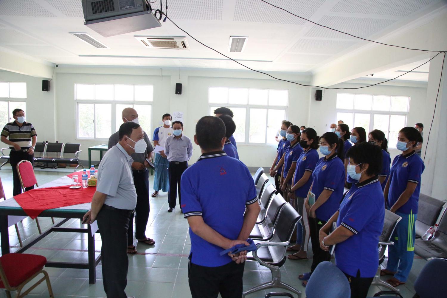ဆက်လက်၍ ဒုတိယဝန်ကြီးသည် စစ်တွေမြို့ရှိ ပြည်နယ်/ခရိုင်/မြို့နယ် အားကစားနှင့် ကာယ ပညာဦးစီးဌာနမှ ဝန်ထမ်းများကိုတွေ့ဆုံ၍ အားကစားကွင်း/ရုံများ ထိန်းသိမ်းရေး၊ အားကစားရုံပြင်ပ အားကစားပြိုင်ပွဲများကျင်းပရေး၊ COVID-19 ဆိုင်ရာ စည်းကမ်းသတ်မှတ် ချက်များနှင့်အညီ နွေရာသီအားကစားသင်တန်းများတွင် မြန်မာ့သိုင်း၊ ခြင်းလုံးနှင့် အခြား အားကစားနည်းများ သင်ကြားလေ့ကျင့် ပေးနိုင်ရေးတို့ကိုမှာကြားပြီး ဝန်ထမ်းများ၏ တင်ပြချက် များအပေါ် လိုအပ်သည်များ ဖြည့်ဆည်း ဆောင်ရွက်ပေးသည်။