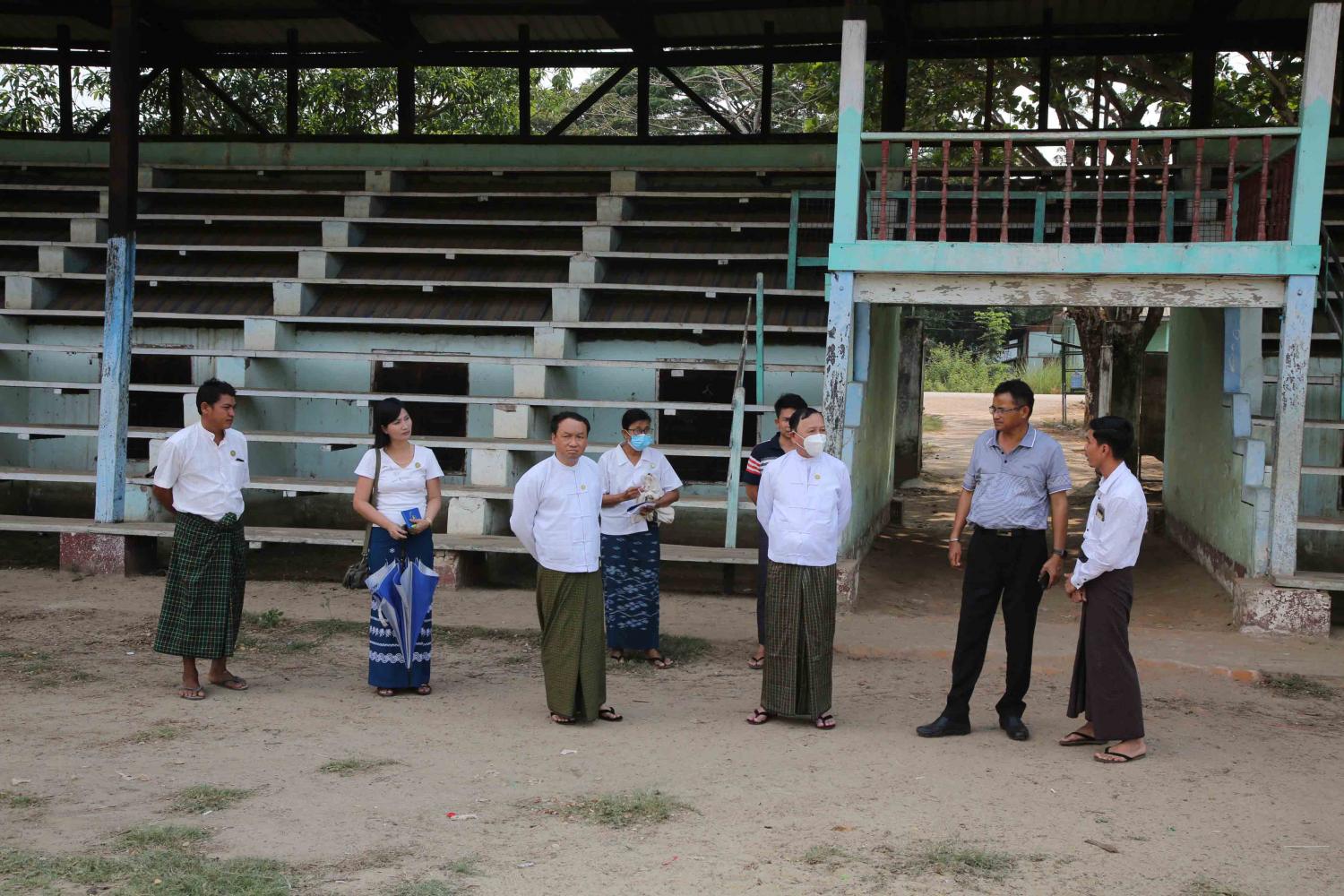 ဆက်လက်၍ ဒုတိယဝန်ကြီးသည် ပဲခူးမြို့ ဥဿာမြို့သစ်ရှိ အားကစားကွင်းတွင် နှစ်ထပ်ပွဲကြည့်စင်၊ ပတ်လည်အုတ်တံတိုင်းတည်ဆောက်ခြင်းနှင့် မီတာ(၄၀၀)ပြေးလမ်း၊ ဘောလုံး ကွင်းပြင်ဆင်ခြင်းလုပ်ငန်းများ ဆောင်ရွက်မည့်အခြေအနေကို ကြည့်ရှုစစ်ဆေး သည်။