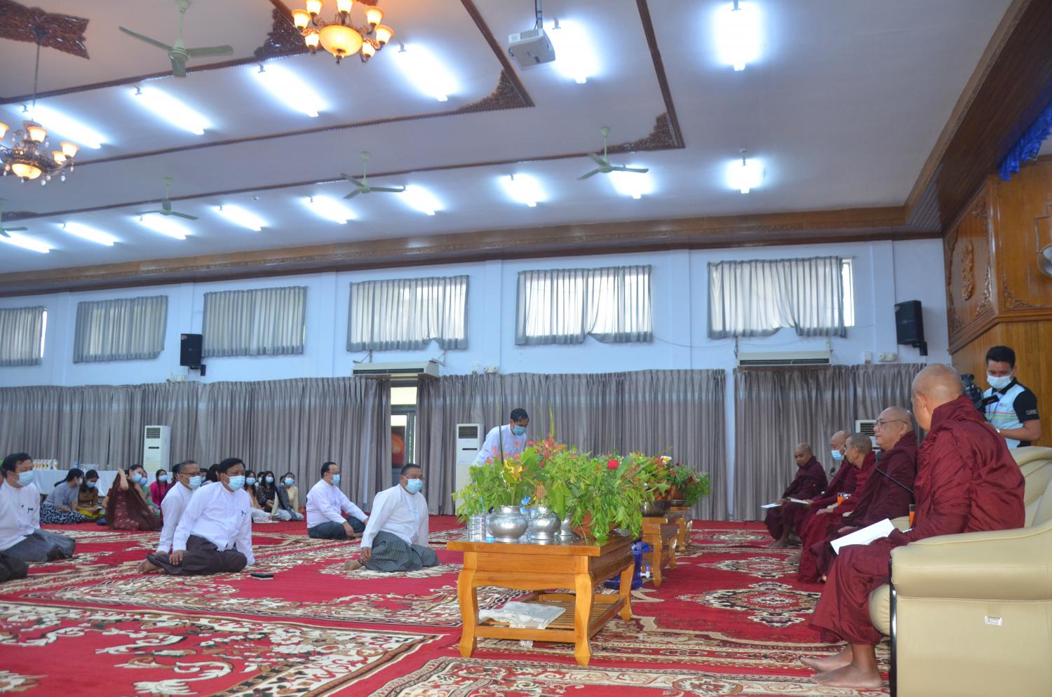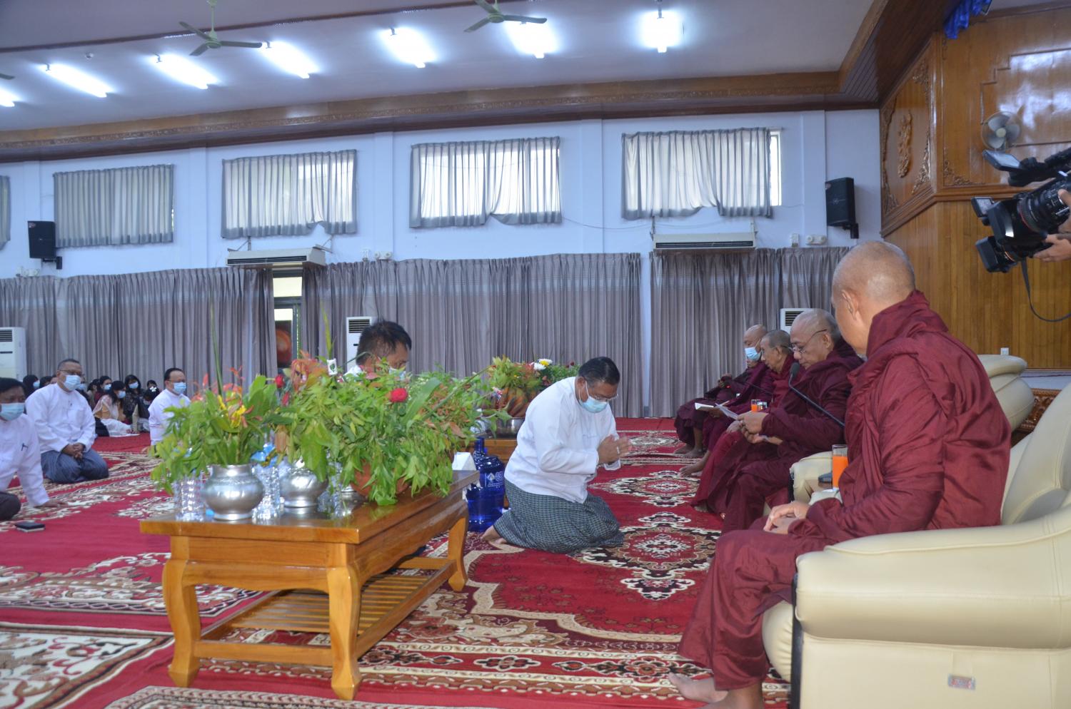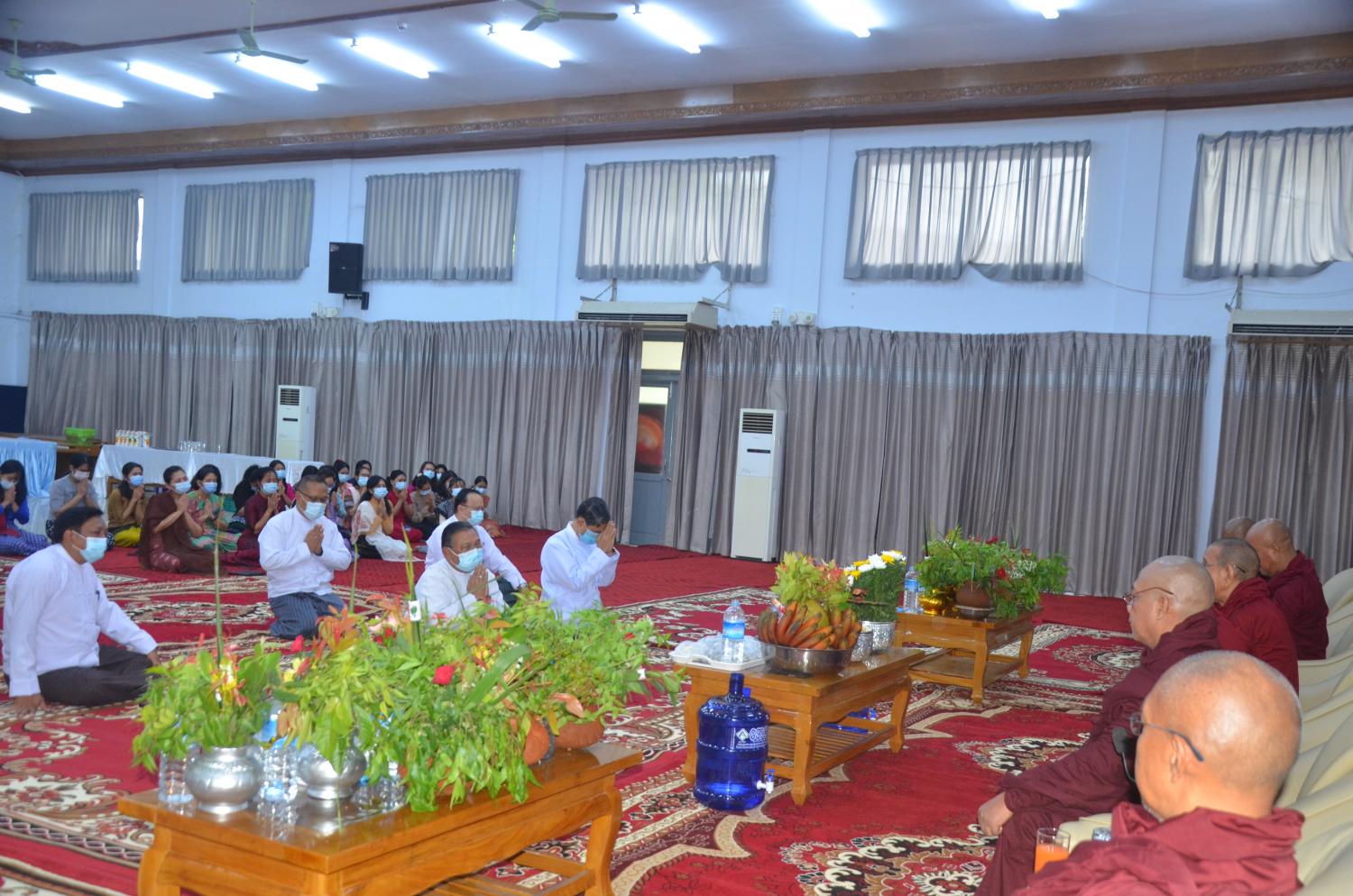 ရှေးဦးစွာ ပျဉ်းမနားမြို့၊ ရတနာမှန်ကျောင်းတိုက် ဆရာတော်ထံမှ ငါးပါးသီလခံယူ ဆောက်တည်ကြပြီး ဆရာတော်သံဃာတော်များက အန္တရာယ်ကင်း ပရိတ်တရား တော်များ ရွတ်ပွားသရဇ္ဈာယ်တော်မူကြရာ အခမ်းအနားတက်ရောက်သူများက နာယူ ကြည်ညိုကြသည်။