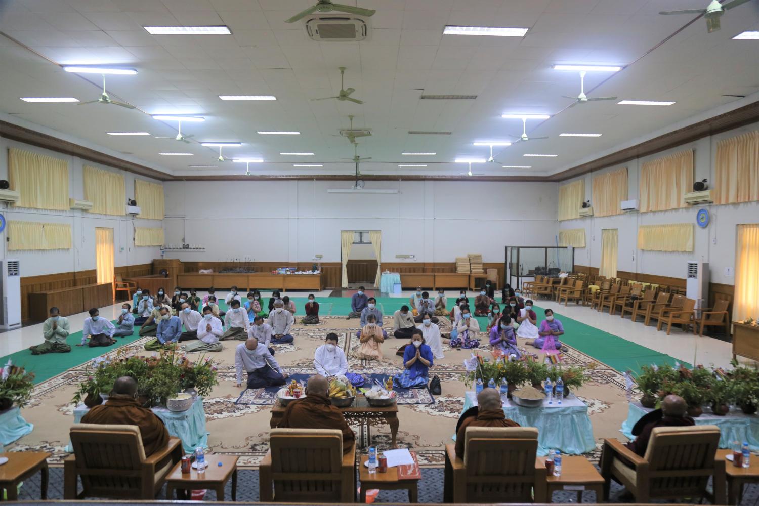 အခမ်းအနားတွင် ပျဉ်းမနားကိုးခန်းကြီး ကျောင်းတိုက်ဆရာတော် သဒ္ဓမ္မ ဇောတိကဓဇ သာသနဓဇ ဓမ္မာစရိယ ဝိနယ ဝိဒူဘဒ္ဒန္တ အာစိန္တ ထံမှ ငါးပါးသီလခံယူကာ ဆရာတော် သံဃာတော်များထံမှ ပရိတ်တရားတော်များနာယူသည်။