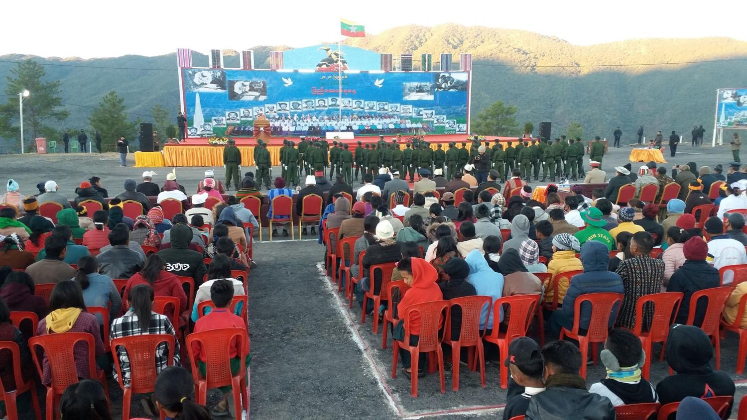 ရှေးဦးစွာ နံနက် ၅ နာရီခွဲ အချိန်တွင် အလံတင်အခမ်းအနားကိုကျင်းပရာ ချင်းပြည်နယ်အစိုးရအဖွဲ့ ပြည်နယ်ဝန်ကြီးချုပ် ဦးဆလိုင်းလျန်လွယ် ၊ ပြည်နယ်လွှတ်တော်ဥက္ကဋ္ဌ ဦးဇိုဘွဲ ၊ ပြည်နယ်အစိုးရ အဖွဲ့ဝင်ဝန်ကြီးများ ၊ ပြည်နယ်အစိုးရအဖွဲ့ အတွင်းရေးမှူး ဦးတိုးဝင်း၊ ပြည်နယ်၊ ခရိုင်၊ မြို့နယ်အဆင့်ဌာနဆိုင်ရာ အကြီးအကဲများနှင့် ဝန်ထမ်းများ ၊ ဒေသခံတိုင်းရင်းသားပြည်သူများတက်ရောက်ကြပြီး နိုင်ငံတော်အလံအားဂုဏ်ပြုတပ်ဖွဲ့နှင့်အတူ အလေးပြုကြသည်။