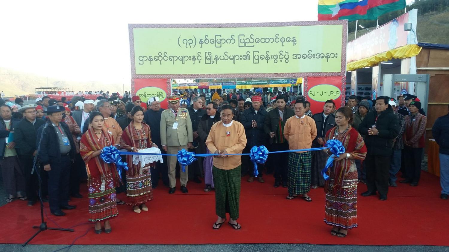 ယင်းနောက်(၇၃)နှစ်မြောက် ပြည်ထောင်စုနေ့အထိမ်းအမှတ် ဌာနဆိုင်ရာပြခန်းများဖွင့်ပွဲကိုဆက်လက်ကျင်းပရာ ပြခန်းများ ဆောက်လုပ်ကြီးကြပ်ရေးကော်မတီဥက္ကဋ္ဌ ပြည်နယ်စိုက်ပျိုးရေး၊ မွေးမြူရေး၊ သစ်တောနှင့် သတ္တုဝန်ကြီးဦးမာန်ဟင်းဒါးလ်က ပြခန်းများပြသ ရခြင်းနှင့် စပ်လျဉ်း၍ ရှင်းလင်းတင်ပြပြီး ပြည်နယ်ဝန်ကြီးချုပ်က ဖဲကြိုးဖြတ်ဖွင့်လှစ်ကာ ပြည်နယ်ဝန်ကြီးချုပ်နှင့် တက်ရောက်လာကြသူများသည် ဌာနဆိုင်ရာ ပြခန်းများအတွင်း လှည့်လည် ကြည့်ရှုအားပေးခဲ့ကြသည်။