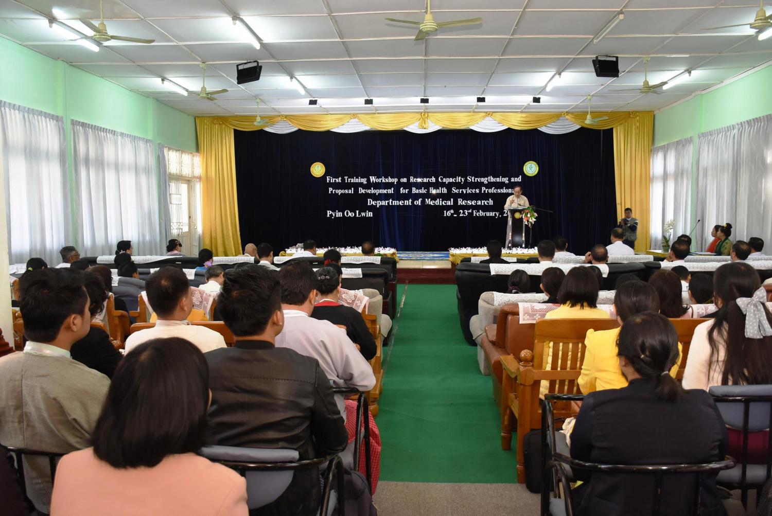 ကျန်းမာရေးမှူးများအတွက် ကျန်းမာရေးနှင့်အားကစားဝန်ကြီးဌာန၏ ပထမဆုံးအကြိမ် သုတေသန နည်းပညာအထူးသင်တန်း (၂၀၂၀) (First training workshop on research capacity strengthening and proposal development for basic health services professionals) သင်တန်းဖွင့်ပွဲအခမ်းအနားကို ယမန်နေ့ နံနက်ပိုင်းတွင် ဆေးသုတေသနဦးစီး ဌာန (ပြင်ဦးလွင်)ရှိ သုတေသနစွမ်းဆောင်ရည်လေ့ကျင့်မြှင့်တင်ရေး ဗဟိုဌာနတွင် ကျင်းပသည်။