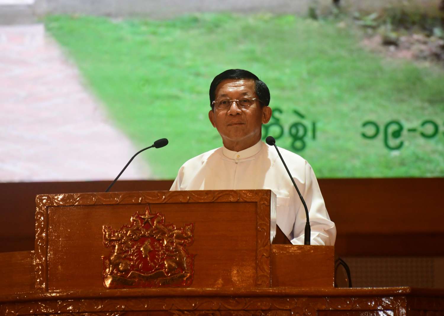 နိုင်ငံတော်စီမံအုပ်ချုပ်ရေးကောင်စီ၏ ရည်မှန်းချက်နှင့်ပတ်သက်၍ ပြောကြားရာတွင် နိုင်ငံတော်စီမံအုပ်ချုပ်ရေးကောင်စီအနေဖြင့် နိုင်ငံတော်၏တာဝန် အရပ်ရပ်ကို ရယူခဲ့သည့် အချိန်ကစပြီး ရှေ့လုပ်ငန်းစဉ် (၅)ရပ်နှင့် ဦးတည်ချက်(၉)ရပ် ချမှတ်၍ နိုင်ငံတော်အတွက် မဆုတ်မနစ် ကြိုးပမ်းဆောင်ရွက်နေခြင်းဖြစ်ကြောင်း၊ နိုင်ငံရေး ဦးတည်ချက် နံပါတ်(၁) တွင် “စစ်မှန်၍ စည်းကမ်းပြည့်ဝသော ပါတီစုံဒီမိုကရေစီစနစ်ကို တရားမျှတမှုအပြည့် ကျင့်သုံးပြီး ဒီမိုကရေစီနှင့် ဖက်ဒရယ်စနစ်ကို အခြေခံသည့် ပြည်ထောင်စုကို တည် ဆောက်နိုင်ရေး” ဟု ချမှတ်ထားသည်ကို တွေ့ရမည်ဖြစ်ကြောင်း၊ ထို့ကြောင့် မိမိတို့နိုင်ငံတွင်စစ်မှန်သည့် ဒီမိုကရေစီ လမ်းကြောင်း ဖြစ်ပေါ်လာရေးအတွက် တပ်မတော်အနေနှင့် ခိုင်ခိုင်မာမာ ဆုံးဖြတ်ချက် ချထားပြီးဖြစ်သည်ကို အလေးအနက်ထား ပြောကြားလိုကြောင်း၊ ထိုသို့စစ်မှန် သည့် ဒီမိုကရေစီနှင့်ဖက်ဒရယ်စနစ်ကို အခြေခံသည့် ပြည်ထောင်စုကို တည်ဆောက်နိုင်ရန် တပ်မတော်နှင့်အတူ နိုင်ငံ့ဝန်ထမ်းများအားလုံး၊ အရပ်ဖက်အဖွဲ့အစည်းများအားလုံး၊ တိုင်းရင်းသားပြည်သူတစ်ရပ်လုံးက ဝိုင်းဝန်းပူးပေါင်းဆောင်ရွက်ကြမှသာ မျှော်မှန်းသည့် ပန်းတိုင်ကို အချိန်တိုအတွင်း အောင်အောင်မြင်မြင် ရောက်ရှိနိုင်မည်ဖြစ်ပါကြောင်း။