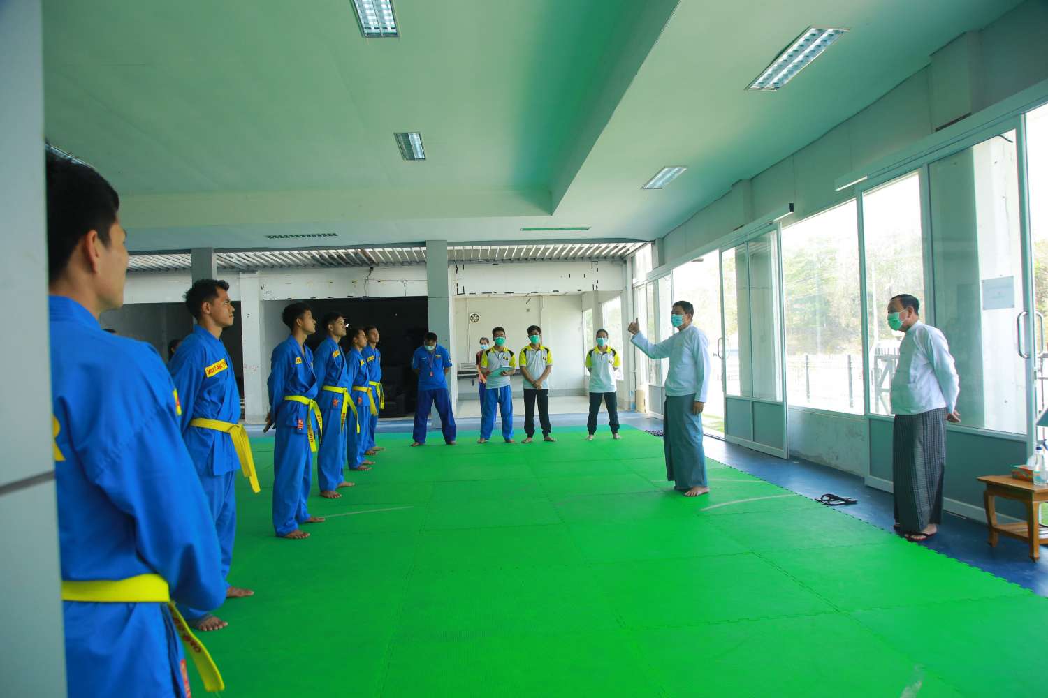 ရှေးဦးစွာ ပြည်ထောင်စုဝန်ကြီးနှင့်အဖွဲ့သည် နေပြည်တော် ဝဏ္ဏသိဒ္ဓိအားကစားရုံ (A) ၌ ဂျူဒို လက်ရွေးစင်အားကစားသမားများ ဝိတ်တန်းအလိုက် သရုပ်ပြယှဉ်ပြိုင်ကစားနေမှုများကို လည်းကောင်း၊ ဝဏ္ဏသိဒ္ဓိအားကစားရုံ (B) ၌ ဘော်လီဘောအားကစားသမားများ လေ့ကျင့်မှု ကိုလည်းကောင်း၊ ဝဏ္ဏသိဒ္ဓိ အားကစားရုံ (C)၌ လေ့ကျင့်နေသော ပိုက်ကျော်ခြင်း အားကစားသမားများ ကိုလည်းကောင်း၊ လက်ဝှေ့လေ့ကျင့်ရေးရုံတွင် လေ့ကျင့်လျက်ရှိသည့် လက်ဝှေ့အားကစားသမားများကိုလည်းကောင်း၊ တိုက်ကွမ်ဒို လေ့ကျင့်ရေးရုံတွင် လေ့ကျင့် လျက်ရှိသည့် တိုက်ကွမ်ဒိုအားကစားသမားများကိုလည်းကောင်း၊ မြားပစ်အားကစားကွင်းတွင် လေ့ကျင့်လျက်ရှိသည့် မြားပစ်အားကစားသမားများ၏ လေ့ကျင့်ပစ်ခတ်ကစားနေမှုများကို လည်းကောင်း ကြည့်ရှုအားပေးပြီး ကျန်းမာမှရည်မှန်းချက်ကို အကောင်အထည်ဖော် ဆောင်ရွက်နိုင်မည်ဖြစ်ပြီး နိုင်ကိုနိုင်ရမည်ဆိုသည့် မလျော့သော ဇွဲ၊ စိတ်ဓာတ်၊ တစ်ဦးကောင်း တစ်ယောက်ကောင်းစိတ် မမွေးဘဲ အသင်း/အဖွဲ့အစည်း စိတ်ဓာတ်တို့ဖြင့် ကြိုးစားလေ့ကျင့် ကြရန်လိုအပ်ကြောင်း၊ တရုတ်နိုင်ငံတွင် ပူးတွဲသွားရောက်လေ့ကျင့်စဉ် ရရှိခဲ့သည့် အတွေ့အကြုံ များ၊ နည်းစနစ်ပိုင်းများအတိုင်း ဆက်လက်လေ့ကျင့် ဆောင်ရွက်သွားကြရန်၊ ပြိုင်ပွဲယှဉ်ပြိုင်ရာ တွင် ပြိုင်ဘက်၏ အားနည်းချက်၊ အားသာချက်ကို အသုံးချပြီး ဖြတ်ထိုးဉာဏ်ဖြင့် ချက်ကောင်းထိအောင် ကိုယ်စွမ်းဉာဏ်စွမ်းနှင့် အားကစားသမားကောင်းစိတ်ဓာတ် ထားပြီး မျှမျှတတ ကြိုးစားယှဉ်ပြိုင်သွားကြရန် လိုအပ်ကြောင်း ပြောကြားခဲ့သည်။