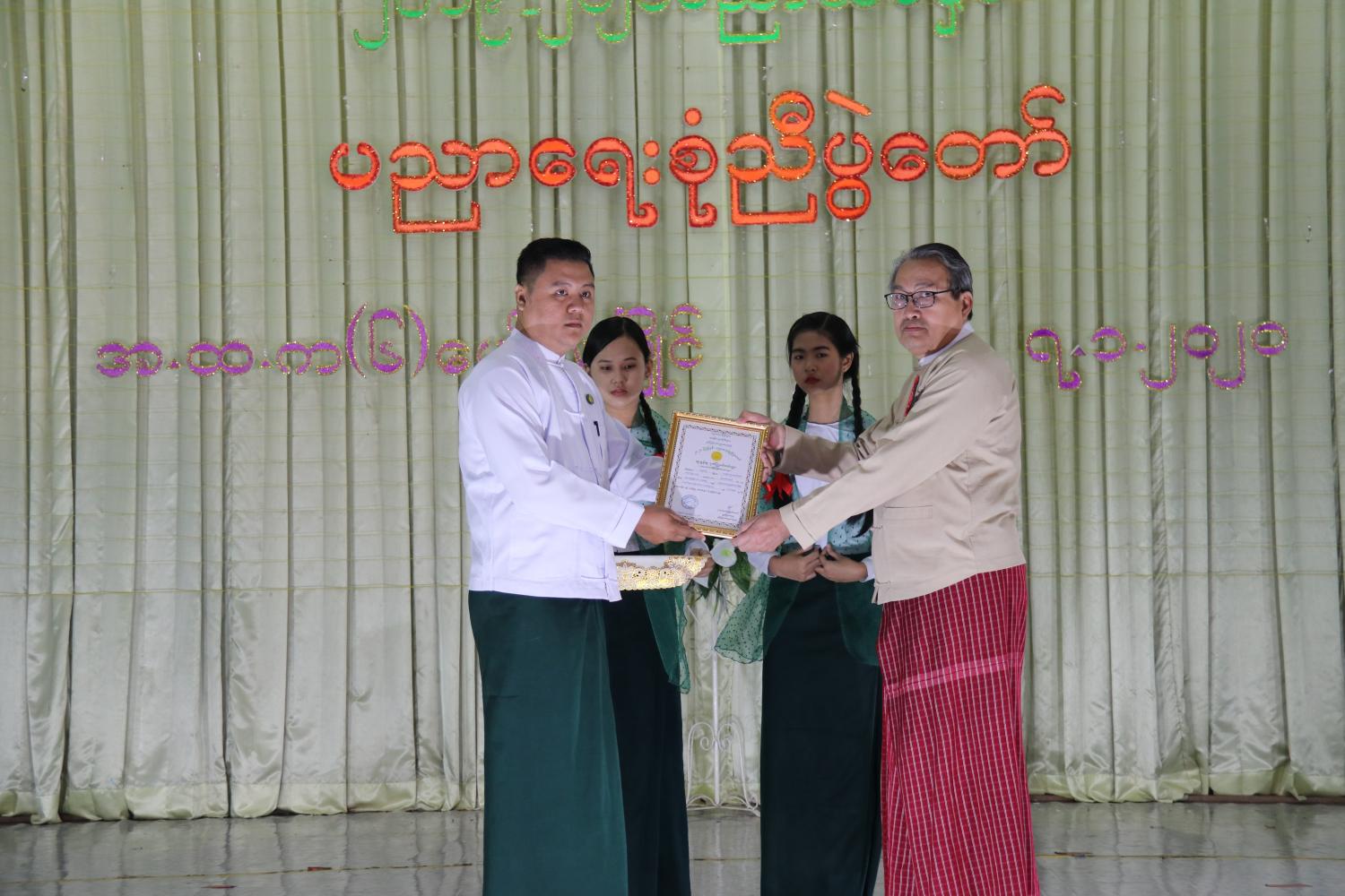 ဆက်လက်၍ ပြည်နယ်ဂုဏ်ဆောင်ဆုရရှိသော ဆရာ/မနှင့် ကျောင်းသား/သူများအား ဂုဏ်ပြုဆုချီးမြှင့်ခြင်းအခမ်းအနားကို အဆိုပါကျောင်းရှိ ရတနာမွန်ခန်းမ၌ ဆက်လက်ကျင်းပရာ ရှေ့ဦးစွာ မွန်ပြည်နယ်ဝန်ကြီးချုပ် ဒေါက်တာအေးဇံက လမ်းညွှန်အမှာစကား ပြောကြားသည်။ ၄င်းနောက် ပြည်နယ်ပညာရေးမှူး ဒေါက်တာချိုချိုမြတ်အောင်က ပြည်နယ်အဆင့်ပညာရေးစုံညီပွဲတော်ကျင်းပရခြင်းနှင့်ပတ်သက်၍ ရှင်းလင်းပြောကြားပြီး ပြည်နယ်ဂုဏ်ဆောင်ဆုရရှိကြသော ဆရာ/မနှင့် ကျောင်းသား/သူများအား ပြည်နယ်ဝန်ကြီးချုပ်နှင့် တာဝန်ရှိသူများက ဆုများအသီးသီး ပေးအပ်ချီးမြှင့်ပေးခဲ့ပြီး ပြည်နယ်ဝန်ကြီးချုပ်နှင့် အဖွဲ့ဝင်များသည် ICT ဆိုင်ရာ ပြခန်းကို လှည့်လည်ကြည့်ရှု့ခဲ့ကြကြောင်း သိရသည်။