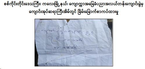 အလားတူ ဇွန် ၁၂ ရက် နံနက် ၁၁ နာရီခန့်တွင် စစ်ကိုင်းတိုင်းဒေသကြီး၊ ကလေးမြို့နယ်၊ ကျောက္ကာကျေးရွာအတွင်းသို့ PDF အကြမ်းဖက်အဖွဲ့ အင်အား ၂၀ ဦးခန့် ဝင်ရောက်လာပြီး သေနတ်များပစ်ဖောက်ကာ ခြိမ်းခြောက်ပြောဆို၍ ကျောက္ကာအခြေခံပညာအလယ်တန်းကျောင်းခွဲမှ ကျောင်းအုပ်ဆရာကြီး၏ နေအိမ်ပေါ်သို့ တက်ရောက်ရှာဖွေကာ နေအိမ်ခြံစည်းရိုးတွင် ခြိမ်းခြောက် စာ ၁ စောင် ကပ်သွားခဲ့ကြောင်း သိရသည်။