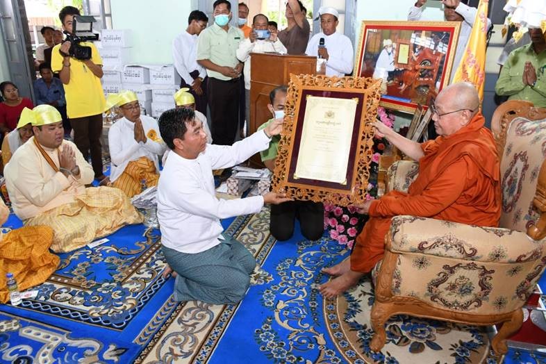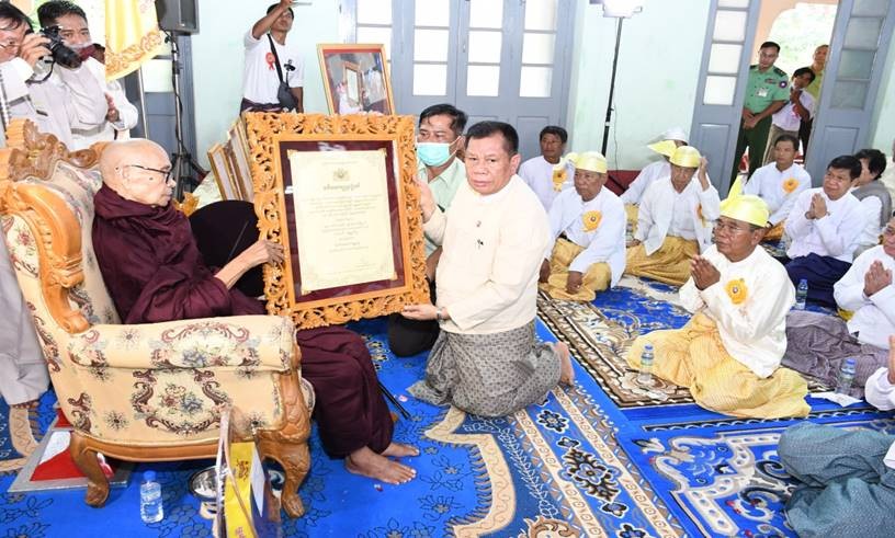 ထို့နောက် တိုင်းဒေသကြီးဝန်ကြီးချုပ်၊ တိုင်းမှူးနှင့် တက်ရောက်လာကြသူများက ကျောင်းထိုင်ဘုန်းကြီးသင်တန်းကျောင်း ကျောင်းအုပ်ဆရာတော် ဘဒ္ဒန္တကေသ၀ထံမှ အနုမောဒနာတရားနာယူခဲ့ကြကြောင်း သတင်းရရှိသည်။
