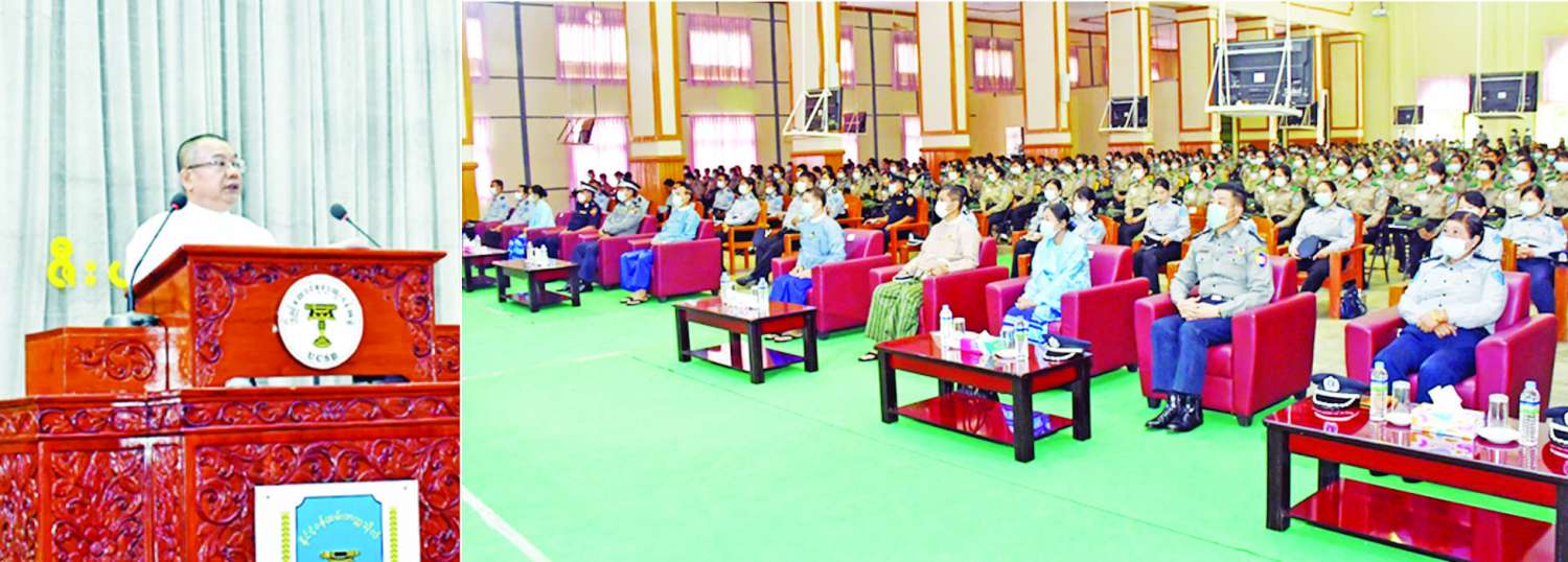 ယခုကဲ့သို့ သင်တန်းကို တက်ရောက်ခြင်းဖြင့် တစ်ဦးနှင့်တစ်ဦး ခင်မင်ရင်းနှီးခြင်း၊ သင်ကြားမှုနှင့် စီမံခန့်ခွဲမှုအတွေ့အကြုံများ အပြန်အလှန် ဖလှယ်ခွင့်ရရှိခြင်း၊ ယဉ်ကျေးမှုဓလေ့ထုံးတမ်းများနှင့် ဒေသန္တရဗဟုသုတများ အပြန်အလှန် လေ့လာနိုင်ခြင်း၊ အတွေးအခေါ် အသိအမြင်များ အချင်းချင်း ဆွေးနွေးနိုင်ခြင်း၊ အချင်းချင်းပူးပေါင်း ဆောင်ရွက်တတ်ခြင်းစသည့် အကျိုးကျေးဇူးများကို ရရှိနိုင်မည်ဖြစ်ပြီး ထိရောက်ကောင်းမွန်သော သင်တန်းဖြစ်သည့်အတွက် ပို့ချပေးသည့် ဘာသာရပ်သင်ခန်းစာများကို လေ့လာမှတ်သားဆည်းပူးပြီး နိုင်ငံ့ဝန်ထမ်းကောင်း တစ်ဦး၏ စိတ်ဓာတ်ရေးရာ၊ စည်းကမ်း၊ ခံယူချက်နှင့် ယုံကြည်ချက်များ ပိုမိုခိုင်မာလာသည့် ဆရာ ဆရာမ များဖြစ်အောင် ကြိုးစားကြရန် တိုက်တွန်းမှာကြားသည်။