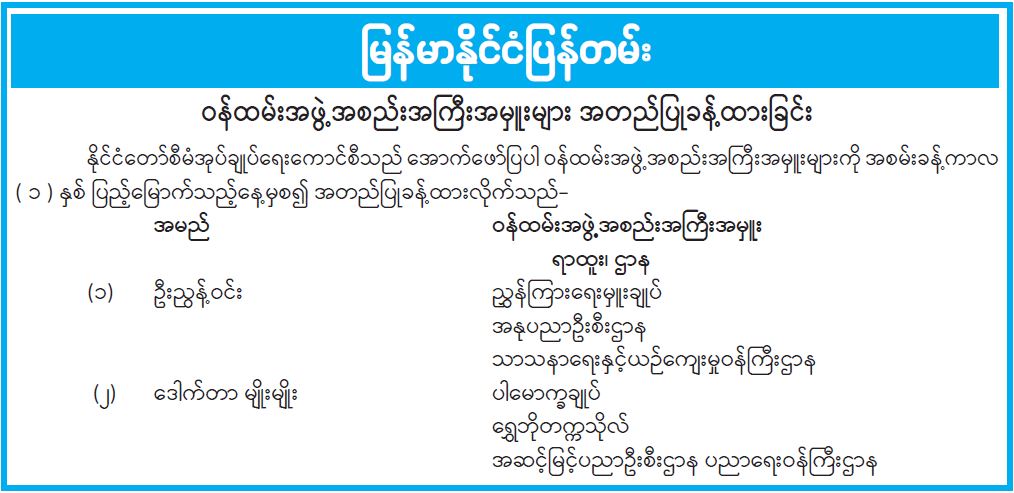 ဝန်ကြီးဌာန ကြေညာချက်များ