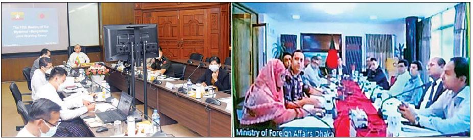 ဘင်္ဂလားဒေ့ရှ်နိုင်ငံသို့ရောက်ရှိနေသည့် နေရပ်စွန့်ခွာသူများ ပြန်လည်လက်ခံရေးဆိုင်ရာ မြန်မာ-ဘင်္ဂလားဒေ့ရှ် ပူးတွဲလုပ်ငန်းအဖွဲ့၏ ပဉ္စမအကြိမ်အစည်းအဝေးကို ယနေ့နံနက် ၁၁ နာရီတွင် နိုင်ငံခြားရေးဝန်ကြီးဌာန၌ ဗီဒီယိုကွန်ဖရင့်ဖြင့် ကျင်းပသည်။