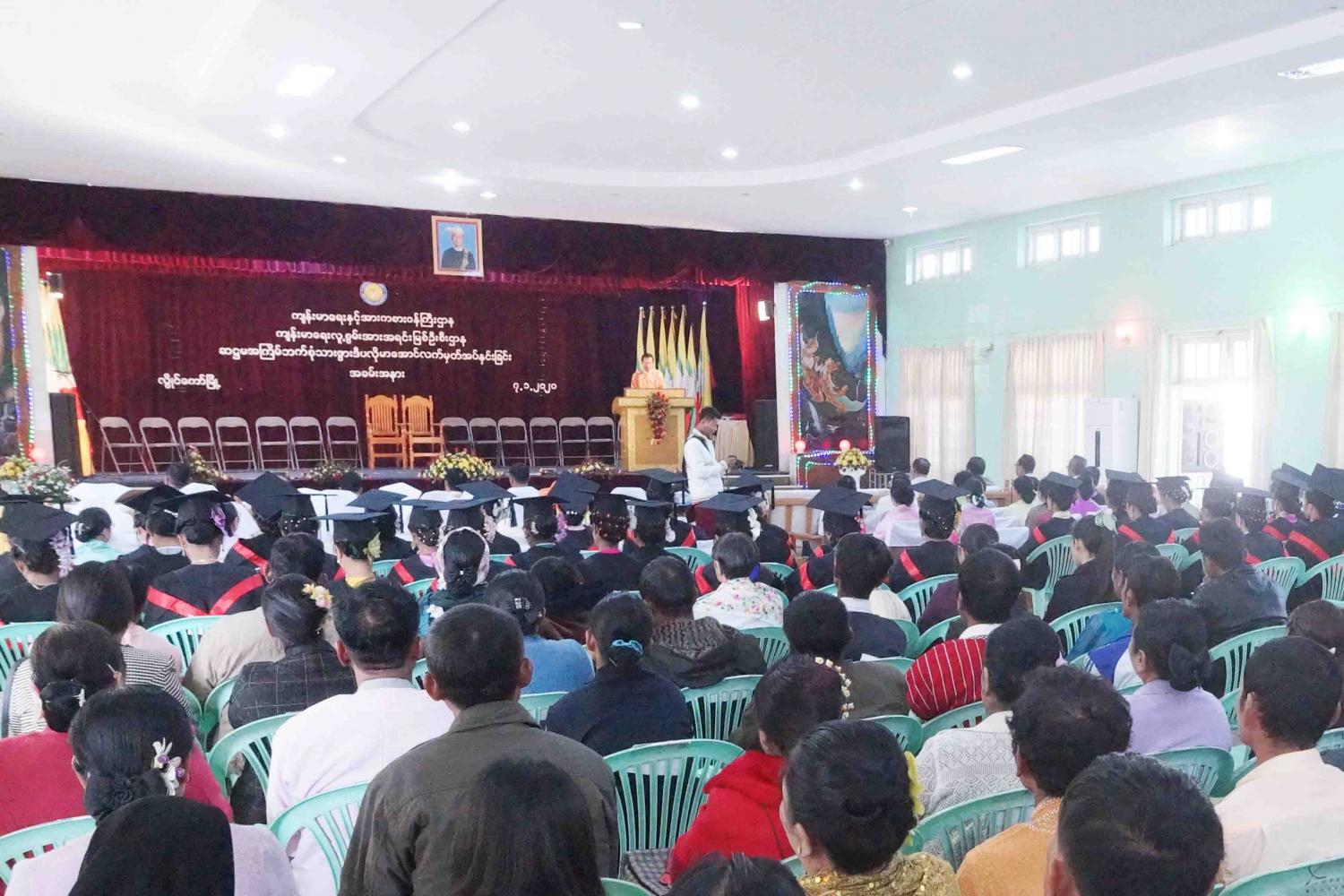 သူနာပြုနှင့် သားဖွားသင်တန်းကျောင်း(လွိုင်ကော်)၏ ဆဋ္ဌမအကြိမ်မြောက် ဘက်စုံ-သားဖွား ဒီပလိုမာ(၂)နှစ် သင်တန်း အောင်လက်မှတ်အပ်နှင်းခြင်း အခမ်းအနားကို ယနေ့ နံနက် ၉ နာရီက လွိုင်ကော်မြို့၊ မြို့နယ်ခန်းမ၌ ကျင်းပပြုလုပ်သည်။