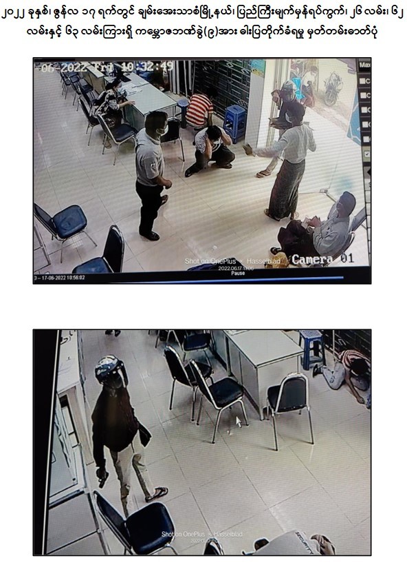 ၂၀၂၂ ခုနှစ်၊ ဇွန်လ ၁၇ ရက်တွင် ရတနာပုံတော်လှန်ရေးအမည်ခံ အကြမ်းဖက်အဖွဲ့မှ အကြမ်းဖက်သမား ၆ ဦးသည် မန္တလေးတိုင်းဒေသကြီး၊ ချမ်းအေးသာစံမြို့နယ်၊ ပြည်ကြီးမျက်မှန်ရပ်ကွက်၊ ၂၆ လမ်း၊ ၆၂ လမ်းနှင့် ၆၃ လမ်းကြားရှိ ကမ္ဘောဇဘဏ်ခွဲ (၉)သို့ ဝင်ရောက်၍ ဘဏ်ဝန်ထမ်းများအား လက်နက်ဖြင့် ခြိမ်းခြောက်ကာ ငွေကျပ် ၄၄၉ သိန်းအား ဓါးပြတိုက် ယူဆောင်သွားခဲ့ကြောင်း သိရှိရသည်။
