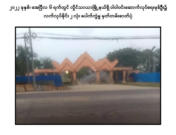 - ဧပြီလ ၆ ရက်တွင် ရန်ကုန်တိုင်းဒေသကြီး၊ လှိုင်သာယာမြို့နယ်ရှိ ဝါဝါဝင်း ဆောက်လုပ်ရေး မုခ်ဦးအား လက်လုပ်မိုင်း ၂ လုံး ပစ်ခတ်ဖောက်ခွဲခဲ့ကြောင်း။