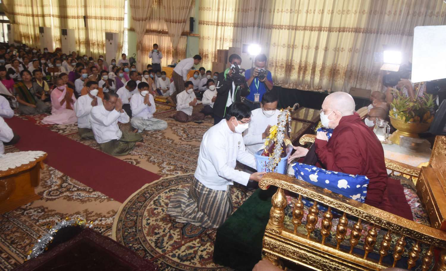 ယင်းနောက် တိုင်းဒေသကြီးဝန်ကြီးချုပ် ဦးစိုးသိန်း၊ တိုင်းဒေသကြီးဝန်ကြီးများ၊ ဂေါပကအဖွဲ့ဝင်များနှင့်အလှူရှင်များက ဩဝါဒါစရိယဆရာတော်ကြီးများနှင့် သံဃာတော်များအား ဝါဆိုသင်္ကန်းနှင့် လှူဖွယ်ပစ္စည်းများ ဆက်ကပ်လှူဒါန်းကြသည်။