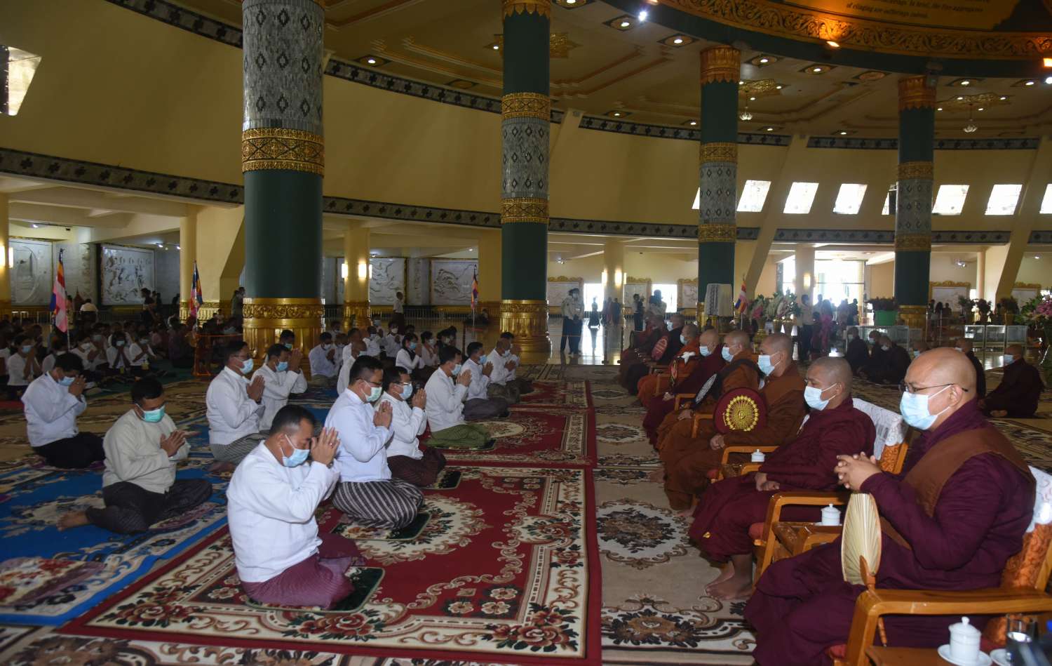 ယင်းနောက် ဥပ္ပါတသန္တိစေတီတော်မြတ်ကြီး ဂေါပကအဖွဲ့၏ ဩဝါဒစရိယ၊ နေပြည်တော် လယ်ဝေးမြို့ အင်းသာအရှေ့ကျောင်းတိုက် ပဓာနနာယက၊ အဘိဓဇအဂ္ဂမဟာ သဒ္ဓမ္မဇောတိက၊ အဂ္ဂမဟာသဒ္ဓမ္မဇောတိကဓဇ ဘဒ္ဒန္တပဏ္ဍိတထံမှ ကိုးပါးသီလခံယူ ဆောက်တည်ကြပြီး ဆရာတော်သံဃာတော်များက မေတ္တာသုတ် ပရိတ်တရားတော်နှင့် ဂုဏ်တော်များကို ရွတ်ပွား ပူဇော်ကြသည်။