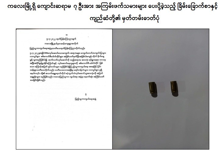 NUG အမည်ခံအကြမ်းဖက်အဖွဲ့နှင့် ၎င်း၏လက်အောက်ခံ PDF အမည်ခံ အကြမ်းဖက် သမားများသည် အနာဂတ်လူငယ်များ၏ ပညာသင်ကြားသင်ယူခွင့် အခွင့်အလမ်းများ ပျက်ပြား၍ ပညာမဲ့လူတန်းစားများ ဖြစ်ပေါ်လာစေရန် ရည်ရွယ်ချက်များဖြင့် နည်းလမ်းမျိုးစုံ အသုံးပြု၍ ပညာရေးကဏ္ဍမြင့်မားရေးကို နှောင့်ယှက်ဖျက်ဆီးလျက်ရှိရာ ဇူလိုင် ၁၇ ရက် နံနက် ၆ နာရီ ခန့်တွင် စစ်ကိုင်းတိုင်းဒေသကြီး၊ ကလေးမြို့နယ်၊ ထောက်ကြန့်ကျေးရွာတွင်နေထိုင်ပြီး အဆိုပါကျေးရွာ အခြေခံပညာ အထက်တန်းကျောင်း၌ တာဝန်ထမ်းဆောင်နေကြသည့် ကျောင်းဆရာမ ၇ ဦးတို့၏ နေအိမ်များအား PDF အမည်ခံ အကြမ်းဖက်သမားများက “ဆရာ၊ ဆရာမများ CDM ပြုလုပ်ရန်၊ ကျောင်းဆက်တက်ခြင်းဆက်လက်မပြုလုပ်ရန်နှင့် ဆက်လက်လုပ်ဆောင်ပါက အပြတ်ချေမှုန်းသွားမည်ဖြစ်ကြောင်း နောက်ဆုံးအနေဖြင့် သတိပေးခြင်း” ဟု ရေးသားထားသည့် ခြိမ်းခြောက်စာနှင့်အတူ ကျည်ဆံတစ်ထောင့်တို့အား အသီးသီးလာရောက်ပစ်ချ ခြိမ်းခြောက်ခဲ့ကြောင်း သိရှိရသည်။