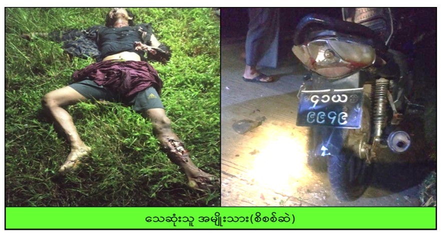 ဖြစ်စဉ်မှာ ဇူလိုင်လ ၁၇ ရက် ည ၈ နာရီခွဲအချိန် ကျောက်တန်းမြို့နယ်၊ ခနောင်ကျေးရွာအနီး ကမာကလုတ်ကျေးရွာသွားကားလမ်းပေါ်ရှိ တယောဘုတ်တံတားအနီး၌ မောင်းနှင်နေသည့် ဆိုင်ကယ်ပေါ်မှ ပေါက်ကွဲမှုဖြစ်ပွား၍ ဆိုင်ကယ်မောင်းနှင်လာသူ အမျိုးသားတစ်ဦး ဒဏ်ရာများဖြင့် လဲကျနေကြောင်း သတင်းအရ လုံခြုံရေးတပ်ဖွဲ့ဝင်များက သွားရောက်စစ်ဆေးခဲ့ရာ အသက် (၄၀)နှစ်ခန့်၊ ဝဲမျက်လုံးချို့ယွင်းနေသည့် အမျိုးသားတစ်ဦး (စိစစ်ဆဲ)အား ဝဲလက်ကောက်ဝတ်မှ ပြတ်ကာ၊ ယာလက်ချောင်းများ၊ လည်ပင်း၊ မေးစေ့နှင့် ဝဲခြေသလုံးတို့ ပေါက်ပြဲပွင့်ထွက် ဒဏ်ရာများဖြင့် သေဆုံးနေပြီး ၎င်းစီးနင်းလာသည့် ၄၁ယ/၉၉၄၉ နံပါတ်တပ်ဆင်ထားသည့် CZI အမျိုးအစား တရုတ်နိုင်ငံထုတ် မော်တော်ဆိုင်ကယ် ၁ စီးနှင့် အနက်ရောင် ဘေးလွယ်အိတ် တစ်လုံးတို့အား ၎င်း၏အနီးမှ တွေ့ရှိရသဖြင့် အနက်ရောင်ဘေးလွယ်အိတ်အား ဖွင့်ဖောက်စစ်ဆေးခဲ့ရာ အိတ်အတွင်းမှ အမျိုးအစား(စိစစ်ဆဲ) လက်ပစ်ဗုံး ၁ လုံးအား တွေ့ရှိရသဖြင့် ဖောက်ခွဲရှင်းလင်းခဲ့ပါသည်။