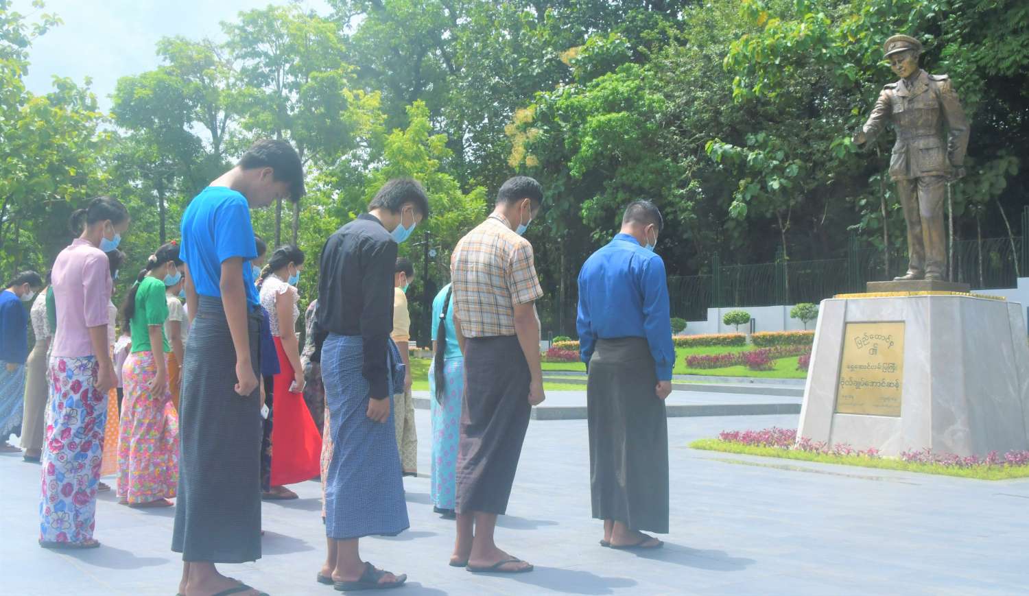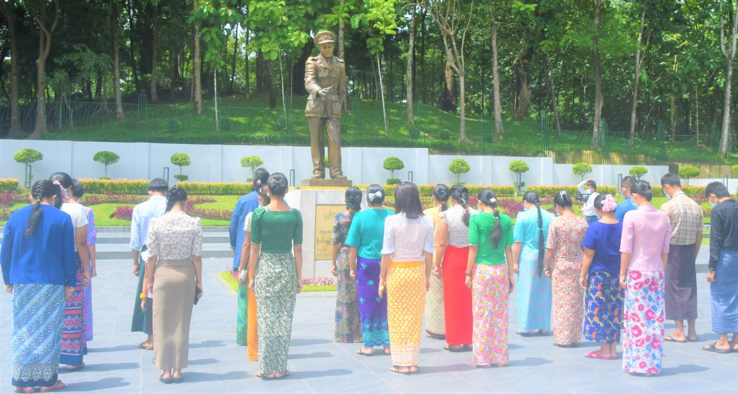 နံနက် ၁၀ နာရီကျော်တွင် မိုးရိပ်တို့သန်းနေသော ရန်ကုန်မြို့မှာ နေရောင်ခြည်ဖြာဆင်းလာမှုကြောင့် ဗိုလ်ချုပ်အောင်ဆန်းကြေးရုပ်ဝင်းရှိ အရိပ်ရသစ်ပင်များနှင့် မြက်ခင်းတို့မှာ နေခြည်ထိတွေ့မှုဖြင့် စိမ်းလဲ့တောက်ပလျက်ရှိသည်။ ဗိုလ်ချုပ်အောင်ဆန်းကြေးရုပ်သို့ ပြည်သူများ တစ်ဖွဲ့ပြီးတစ်ဖွဲ့ လာရောက်ဂါရဝပြုလျက်ရှိရာ အသက် ၈၉ နှစ်ရှိ တပ်မတော်အငြိမ်းစား အဘစိုးညွန့်က “ဗိုလ်ချုပ်ကျဆုံးချိန်မှာ အဘက အသက် ၁၄ နှစ်ကျော်ပြီ။ ဒါနဲ့တပ်ထဲဝင်ခဲ့တယ်။ အာဇာနည်ခေါင်းဆောင်ကြီး ဗိုလ်ချုပ်အောင်ဆန်းနဲ့ အာဇာနည်ခေါင်းဆောင်များကို အာဇာနည်နေ့တိုင်း အဘလာပြီး ဂါရဝပြုတယ်။ ဗိုလ်ချုပ်အောင်ဆန်းဟာ တပ်မတော်ရဲ့ဖခင်၊ ဗိုလ်ချုပ်နေဝင်းဟာ တပ်မတော်ရဲ့မိခင်ဆိုပြီး အဘခံယူထားတယ်။ အခုလိုနှစ်စဉ် အာဇာနည်နေ့မှာ အာဇာနည်ခေါင်းဆောင်များကို ဂါဝရပြုရတာကို ဂုဏ်လည်းယူတယ်” ဟု ပြောကြားသည်။