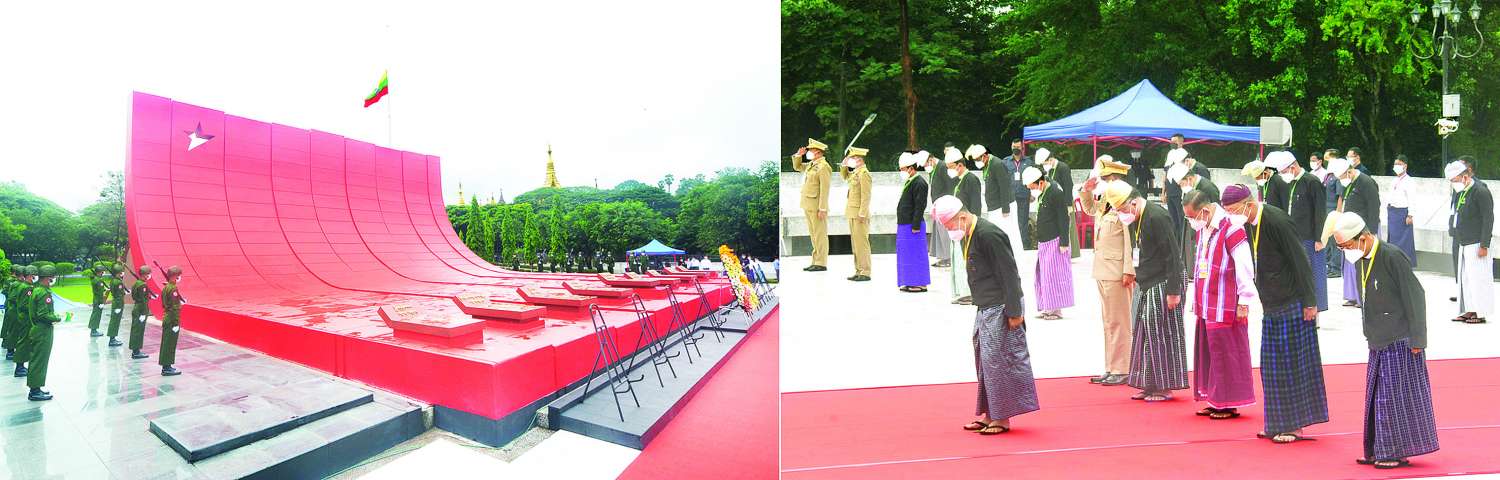 ဆက်လက်၍ ရန်ကုန်တိုင်းဒေသကြီးအစိုးရအဖွဲ့၊ နိုင်ငံရေးပါတီများမှ ကိုယ်စားလှယ်များ၊ မြန်မာနိုင်ငံဆိုင်ရာ နိုင်ငံခြားသံရုံးများမှ သံရုံးအကြီးအကဲများနှင့် သံရုံးယာယီတာဝန်ခံများက ဗိုလ်ချုပ်အောင်ဆန်းနှင့်တကွ အာဇာနည်ခေါင်းဆောင်ကြီးများ၏ အထိမ်းအမှတ်ဂူဗိမာန်၌ လွမ်းသူ့ပန်းခွေချ အလေးပြုကြသည်။
