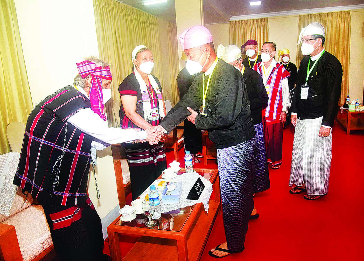 ရှေးဦးစွာ နိုင်ငံတော်စီမံအုပ်ချုပ်ရေးကောင်စီ ဒုတိယဥက္ကဋ္ဌ ဒုတိယဝန်ကြီးချုပ် ဒုတိယဗိုလ်ချုပ်မှူးကြီးစိုးဝင်းနှင့် အဖွဲ့ဝင်များက အာဇာနည်ခေါင်းဆောင်ကြီးများ၏ မိသားစုဝင်များနှင့် ဖိတ်ကြားထားသူများအား ရင်းရင်းနှီးနှီး တွေ့ဆုံနှုတ်ဆက်ကြသည်။