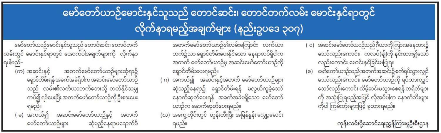 မော်တော်ယာဉ်မောင်းနှင်သူသည် တောင်ဆင်း၊ တောင်တက်လမ်း မောင်းနှင်ရာတွင် လိုက်နာရမည့်အချက်များ (နည်းဥပဒေ ၃၀၇) 08/08/2022 မော်တော်ယာဉ်မောင်းနှင်သူသည် တောင်ဆင်း၊ တောင်တက်လမ်း မောင်းနှင်ရာတွင် လိုက်နာရမည့်အချက်များ (နည်းဥပဒေ ၃၀၇)