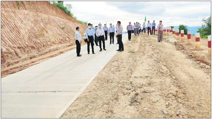ဒုတိယဝန်ကြီးနှင့်အဖွဲ့သည် ၂၀၂၂-၂၀၂၃ ဘဏ္ဍာရေးနှစ် ကျိုင်းတုံခရိုင် ကျေးလက်လမ်းဖွံ့ဖြိုးရေး ဦးစီးဌာနက အကောင်အထည်ဖော် ဆောင်ရွက်လျက်ရှိသော ကျေးရွာအုပ်စု နှစ်အုပ်စု၊ ကျေးရွာ ၁၇ ရွာ၊ အိမ်ခြေ ၉၂၇ အိမ်၊ လူဦးရေ ၅၀၅၇ ဦးအတွက် အကျိုး ဖြစ်ထွန်းစေမည့်အရှည် (၇/၆) မိုင်ရှိ နောင်ငင်း-ဝမ်ဆိုင်း(လွယ်)လမ်း ကွန်ကရစ်ခင်းခြင်းလုပ်ငန်း ဆောင်ရွက်နေမှုကို ကြည့်ရှုစစ်ဆေးကာ သတ်မှတ်ဘဏ္ဍာနှစ်အတွင်း စံချိန်စံညွှန်းပြည့်မီစွာဖြင့် အချိန်မီပြီးစီးရေးကြီးကြပ်ဆောင်ရွက်ကြရန် မှာကြား၍ လုပ်ငန်းလိုအပ်ချက်များအပေါ် ဖြည့်ဆည်းဆောင်ရွက်ပေးခဲ့သည်။