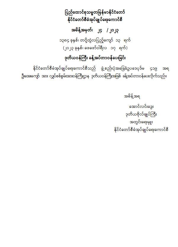 ရန်ကုန်မြို့နှင့် မန္တလေးမြို့အတွက် ရည်ညွှန်းလက်ကားဈေးနှုန်းများနှင့် ပြည်ထောင်စုနယ်မြေ နေပြည်တော်၊ တိုင်းဒေသကြီး/ပြည်နယ် မြို့တော်များအတွက် ရည်ညွှန်းလက်လီဈေးနှုန်းများ