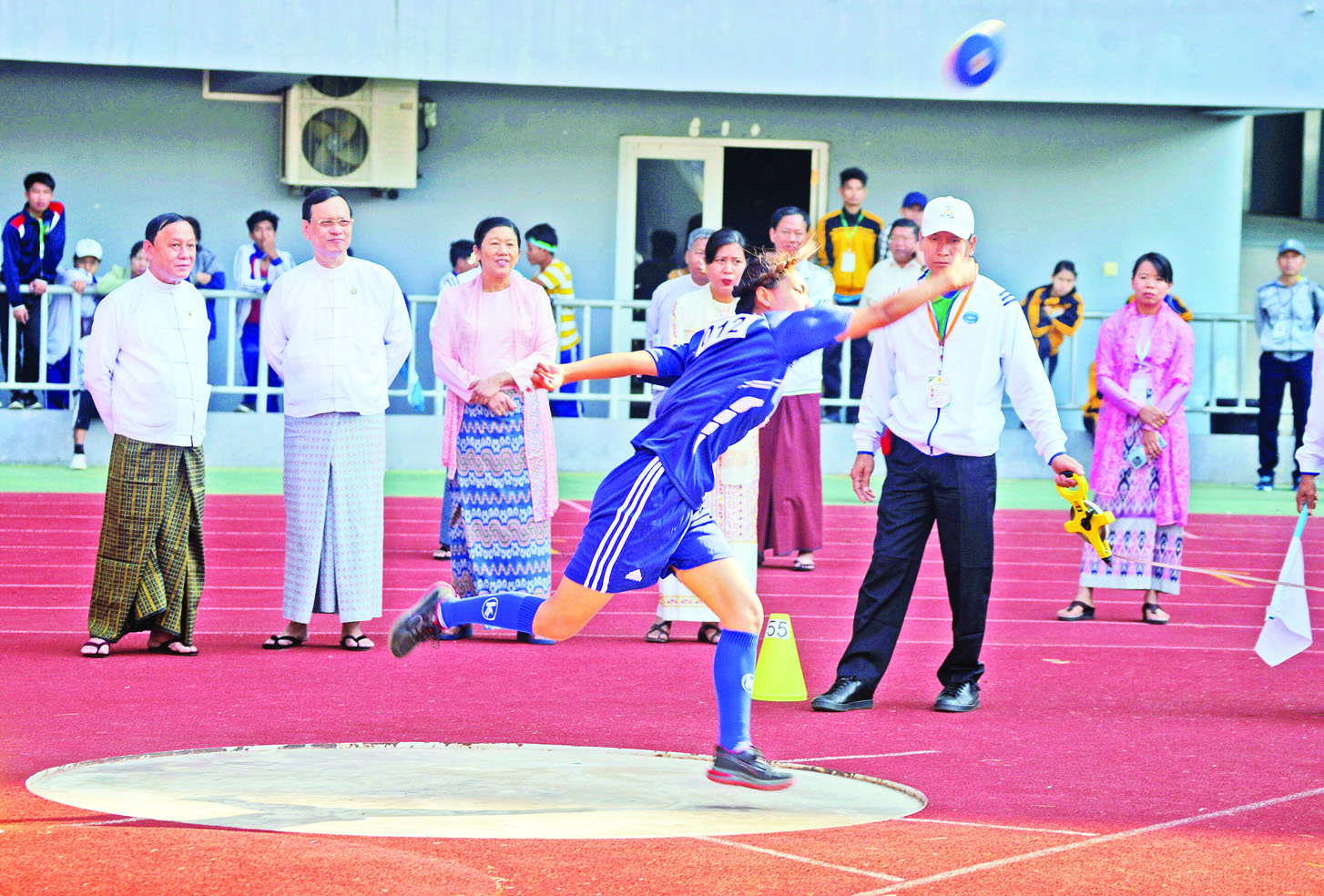 ယနေ့နံနက်ပိုင်းတွင် ပညာရေးဝန်ကြီးဌာန ဒုတိယဝန်ကြီး ဒေါက်တာဇော်မြင့်နှင့် အားကစားနှင့်လူငယ်ရေးရာဝန်ကြီးဌာန ဒုတိယဝန်ကြီး ဦးမျိုးလှိုင်တို့သည် တာဝန်ရှိသူများနှင့်အတူ ဝဏ္ဏသိဒ္ဓိဘောလုံးကွင်း၌ပြုလုပ်သည့် ပြေးခုန်ပစ်အားကစားပြိုင်ပွဲကို ကြည့်ရှုအားပေးသည်။