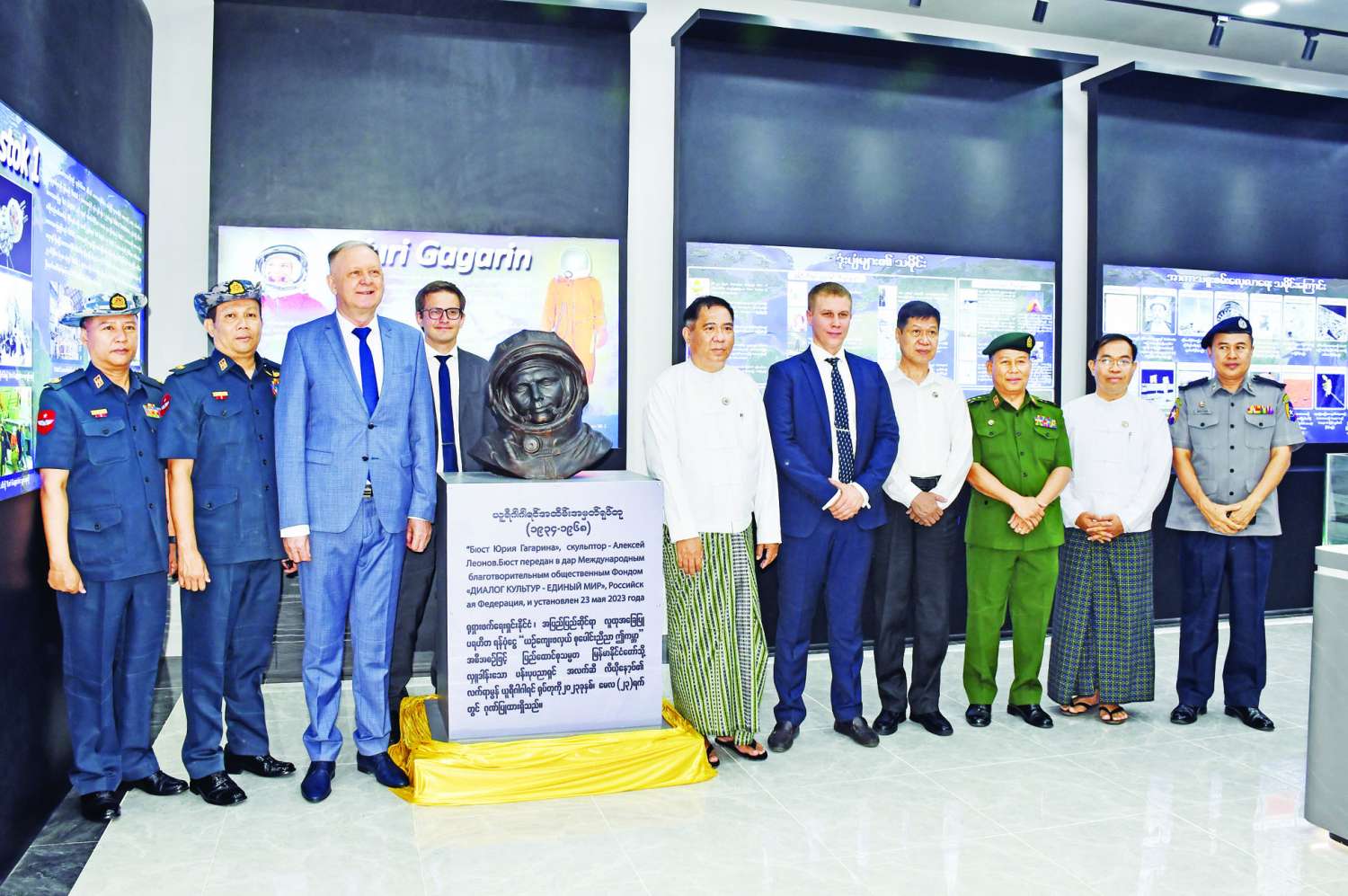 ယင်းနောက် ပြည်ထောင်စု ဝန်ကြီးနှင့် သံအမတ်ကြီးတို့က ကမ္ဘာ့ပထမဆုံး အာကာသယာဉ် မှူး ယူရီဂါဂါရင်ရုပ်တုကို စက် ခလုတ်နှိပ်၍ ဖွင့်လှစ်ပေးခဲ့ ကြောင်း သိရသည်။