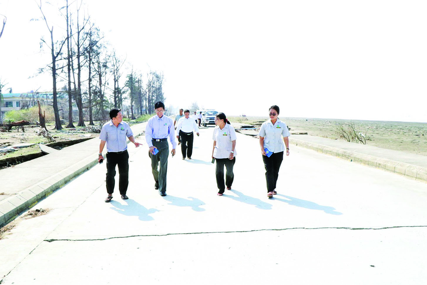 သမဝါယမနှင့် ကျေးလက်ဖွံ့ဖြိုးရေးဝန်ကြီးဌာန ဒုတိယဝန်ကြီး ဦးမြင့်စိုးသည် ကျေးလက်ဒေသ ဖွံ့ဖြိုးတိုးတက်ရေးဦးစီးဌာန ညွှန်ကြားရေးမှူးချုပ်နှင့် တာဝန် ရှိသူများနှင့်အတူ ယမန်နေ့နံနက်ပိုင်းတွင် စစ်တွေမြို့ ကမ်းခြေပတ်လမ်း၌ လေမုန်တိုင်းဒဏ်ကြောင့် လမ်းနှင့်မြေထိန်းနံရံများ ပြိုကျပျက်စီးသွားမှု များကို ကြည့်ရှုစစ်ဆေးပြီး အမြန်ဆုံးပြန်လည်ပြုပြင် တည်ဆောက်နိုင်ရေး မှာကြားသည်။