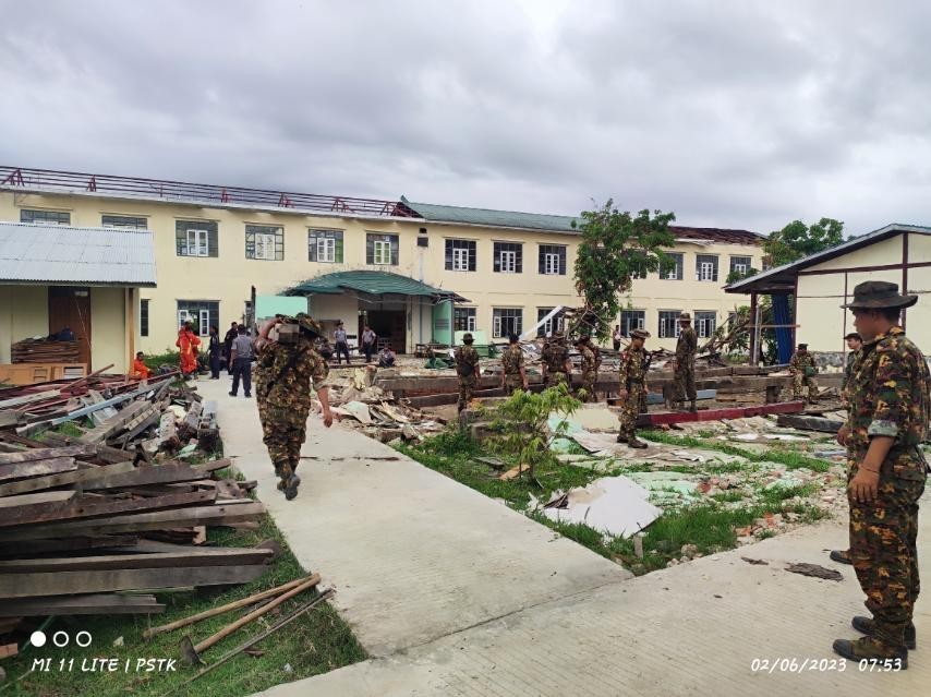 သဘာဝဘေးအန္တရာယ်ကျရောက်ခဲ့ရသည့် ဒေသများတွင် လိုအပ်သည့် ကူညီကယ်ဆယ်ရေးနှင့် ပြန်လည်ထူထောင်ရေးလုပ်ငန်းများ ကူညီဆောင်ရွက်ပေးနိုင်ရေးအတွက် တပ်မတော်မှ ကြိုတင်စုဖွဲ့စေလွှတ်ထားသည့် ကူညီကယ်ဆယ်ရေးအဖွဲ့များသည် နယ်မြေခံလုံခြုံရေးတပ်ဖွဲ့ဝင်များ၊ လူမှုကယ်ဆယ်ရေးအဖွဲ့များနှင့် ပူးပေါင်း၍သက်ဆိုင်ရာဒေသများတွင် အင်တိုက်အားတိုက် ကူညီဆောင်ရွက်ပေးလျက်ရှိသည်။