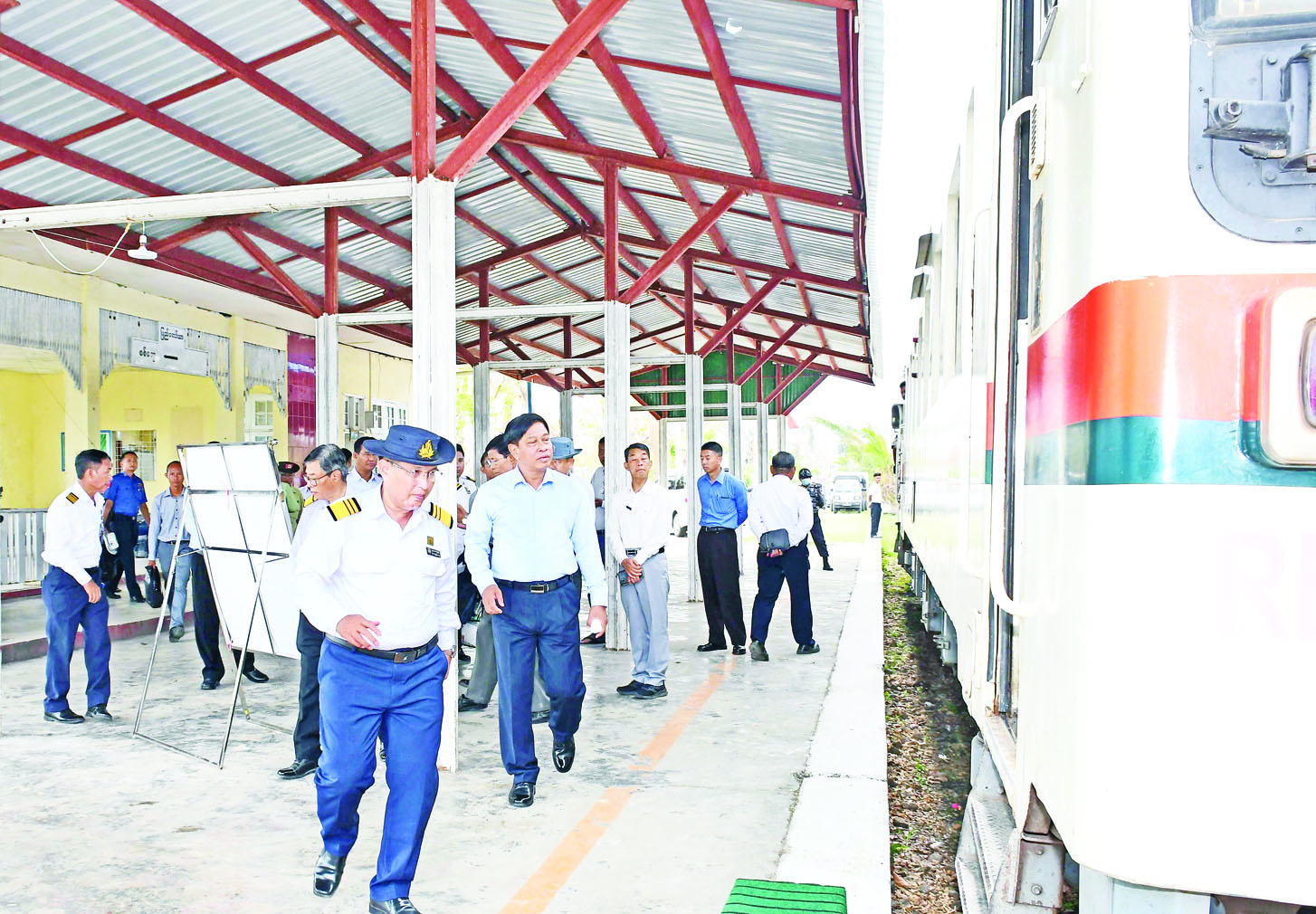 ထို့နောက် ဗိုလ်ချုပ်ကြီး တင်အောင်စန်းနှင့်အဖွဲ့သည် ပြည်တော်သာ(စစ်တွေ)ဘူတာမှ ပြည်တော်သာ - စစ်တွေ - ဇောပူဂျာ - ရေချမ်းပြင် မီးရထားခရီးစဉ် ဖြင့် ရေချမ်းပြင်ဘူတာသို့ လိုက်ပါစီးနင်း ပြီး မီးရထားလမ်းတစ်လျှောက် မိုခါမုန်တိုင်းဒဏ်ကြောင့် ပျက်စီးသွားသော ဘူတာများနှင့် ရထားလမ်းတာပေါင် ပြိုကျနေမှုများကို အမြန်ပြုပြင်ဆောင်ရွက်ရန်၊ ရထားလမ်းပိုင်း တောင့်တင်း ကြံ့ခိုင်စေရေး စစ်ဆေးပြုပြင်ဆောင်ရွက်ရန်၊ ရေကြီး၊ ရေလျှံမှုများဖြစ်ပေါ်ခဲ့သောကြောင့် တံတားများကြံ့ခိုင်မှုရှိစေရေး ပြန်လည်စစ်ဆေးပြုပြင်ရန်၊ ပျက်စီးသွားသည့် ဘူတာဆိုင်းဘုတ်များကို စနစ်တကျ ပြန်လည်တပ်ဆင်ရန်နှင့် ဘူတာအင်္ဂါရပ်စုံလင်အောင် ပြန်လည်စစ်ဆေး ပြုပြင်ရန်၊ တက္ကသိုလ်ကျောင်းသားများ အများဆုံး အသုံးပြုလျက်ရှိသော လမ်းပိုင်းဖြစ်သောကြောင့် ရထားပြေးဆွဲချိန်များ မှန်ကန်စေရန်နှင့် ဘူတာများတွင် ခရီးသည်နားနေ ထိုင်ခုံများ မုန်တိုင်းဒဏ်ကြောင့် ပျက်စီးသွားမှုကို ပြုပြင်ပေးရန်တာဝန်ရှိသူများကို မှာကြားသည်။