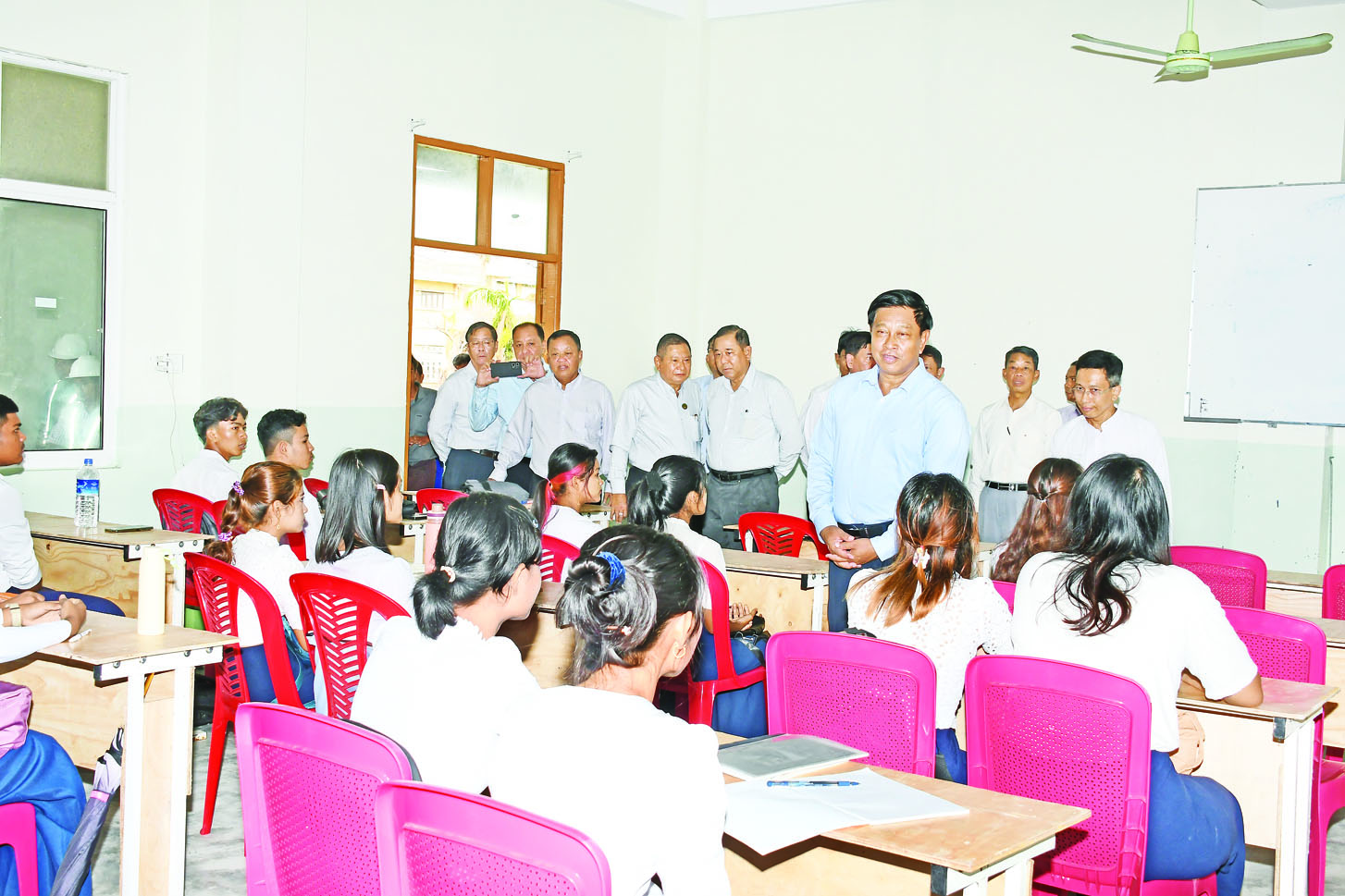 ယင်းနောက် ကွန်ပျူတာတက္ကသိုလ်(စစ်တွေ)သို့ ရောက်ရှိပြီး ကျောင်းသား ကျောင်းသူများ ပညာသင်ကြားနေမှု အခြေအနေ၊ ကျောင်းဆောင်နှင့် စာသင်ခန်းများ ပြုပြင်ဆောင်ရွက်ပြီးစီးမှုနှင့် ဆက်လက်ဆောင်ရွက်ရမည့် လုပ်ငန်းအစီအမံများကို မေးမြန်းကြည့်ရှုကာ လိုအပ်သည်များကို မှာကြားသည်။