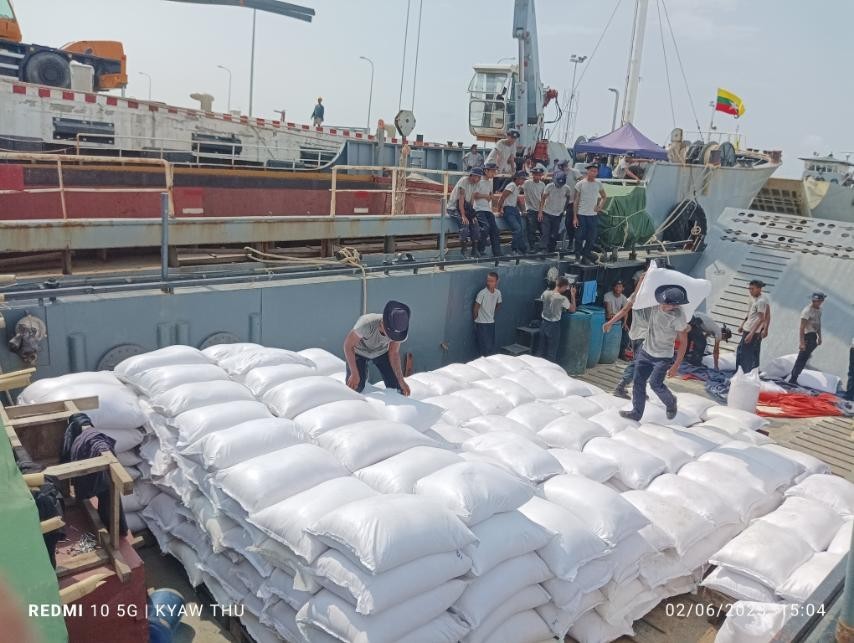 ဆိုင်ကလုန်းမုန်တိုင်း မိုခါ(MOCHA) ဖြတ်သန်းတိုက်ခတ်မှုကြောင့် ထိခိုက်ပျက်စီး ဆုံးရှုံးမှုများဖြစ်ပေါ်ခဲ့သော ရခိုင်ပြည်နယ်၊ စစ်တွေမြို့ရှိ မုန်တိုင်းဒဏ်သင့်ပြည်သူ များအား လိုအပ်သောပစ္စည်းများ ကူညီထောက်ပံ့မှုများဆောင်ရွက်ပေးနိုင်ရန် တပ်မတော်(ရေ)မှ ၂၉ မီတာ ကမ်းထိုးရေယာဉ်ပထမအစီးသည် ဂတ်စ်မီးဖိုအလုံး ၆၀ ပါ ၆ ဖာ၊ ဂတ်စ်ဘူး အလုံး ၆၀ ပါ၃ ဖာ၊ ကြက်ဥ ၆,၀၀၀ လုံး၊ ၁၃ မျိုးပါ စားသောက်ကုန် ၁,၃၃၉ ဖာ၊ ကြက် ၅၀ ကောင်၊ Portable Generator Set 56 kW ၂ စုံ စုစုပေါင်းကုန်တန်ချိန် ၁၁ တန်တို့အား ရေချမ်းပြင်ကမ်းထိုးရပ်၌ တင်ဆောင်၍ အငူမော်ကမ်းထိုးရပ်သို့ လည်းကောင်း၊ ၂၉ မီတာ ကမ်းထိုးရေယာဉ်ဒုတိယအစီးသည် ဆန်အိတ် ၉၉၉ အိတ် စုစုပေါင်း ကုန်တန်ချိန် ၅၀ တန်တို့အား စစ်တွေကမ်းထိုးရပ်၌ တင်ဆောင်၍ ပေါက်တော ကမ်းထိုးရပ်သို့လည်းကောင်း၊ ၅၆ မီတာ ကမ်းထိုးရေယာဉ်တစ်စီးသည် မီးစက် ၃ လုံး၊ သစ်မျိုးစုံ ၆၉၆ ချောင်း၊ ဘိလပ်မြေ ၁,၅၁၉ အိတ်၊ ဒီဇယ်ဆီ ၅ ပေပါနှင့် ဆောက်လုပ်ရေးလုပ်ငန်းသုံး Backhole ၁ စီး စုစုပေါင်း ကုန်တန်ချိန် ၁၁၀.၉၅ တန်တို့အား စစ်တွေကမ်းထိုးရပ်နှင့် အငူမော်ကမ်းထိုးရပ်တို့၌ တင်ဆောင်၍ ရသေ့တောင်ကမ်းထိုးရပ်သို့လည်းကောင်း ယနေ့တွင် အသီးသီးပို့ဆောင်ပေးခဲ့သည်။