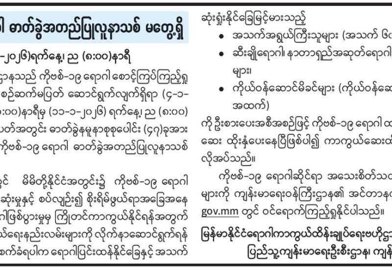အလားတူ ကျန်းမာရေး ဝန်ကြီးဌာနအနေဖြင့် ရခိုင်ပြည်နယ်သို့ အထူးကုဆရာဝန်ကြီးများ ပါဝင်သော ဆေးကုသရေးအဖွဲ့များ ဆက်လက်စေလွှတ်၍ ရောဂါရှာဖွေကုသမှုများ ဆက်လက် ဆောင်ရွက်သွားမည်ဖြစ်ကြောင်း သိရသည်။