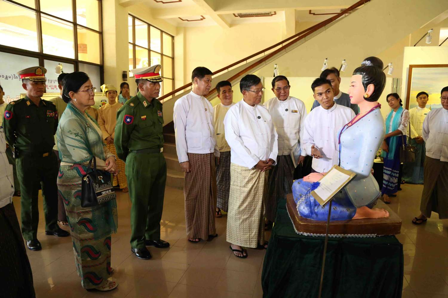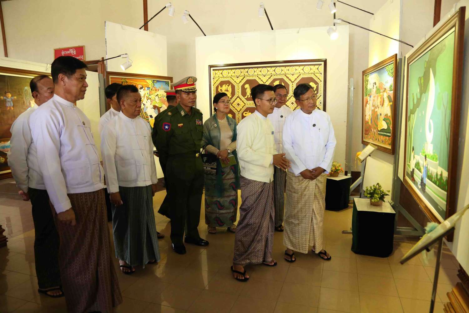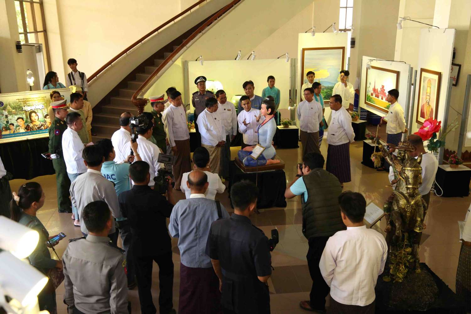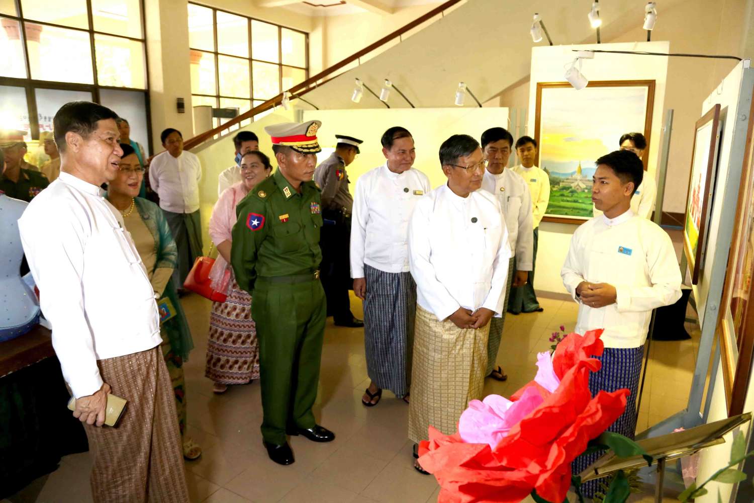 ဦးစွာ ပြည်ထောင်စုဝန်ကြီးနှင့် အခမ်းအနားသို့ တက်ရောက်လာသူများသည် ပန်းချီပညာဌာနတွင် ပညာဆည်းပူးခဲ့ကြသည့် စတုတ္ထနှစ်ကျောင်းသား ကျောင်းသူများ၏ ဆီဆေး၊ ရေဆေး၊ Acrylic တို့ဖြင့် ရေးဆွဲထားသည့် ပန်းချီကားများ၊ ဒီပလိုမာတန်း ကျောင်းသား၊ ကျောင်းသူများ၊ မဟာဝိဇ္ဇာတန်း ကျောင်းသား ကျောင်းသူများရေးဆွဲထားသည့် ပန်းချီလက်ရာများနှင့် ပန်းပုပညာဌာန စတုတ္ထနှစ်ကျောင်းသားများက ပလာစတာ၊ အင်္ဂတေ၊ ဖိုက်ဘာတို့ဖြင့် ပုံဖော်ထုဆစ်ထားသည့် ပန်းပုလက်ရာများကို ကြည့်ရှုအားပေးကြသည်။