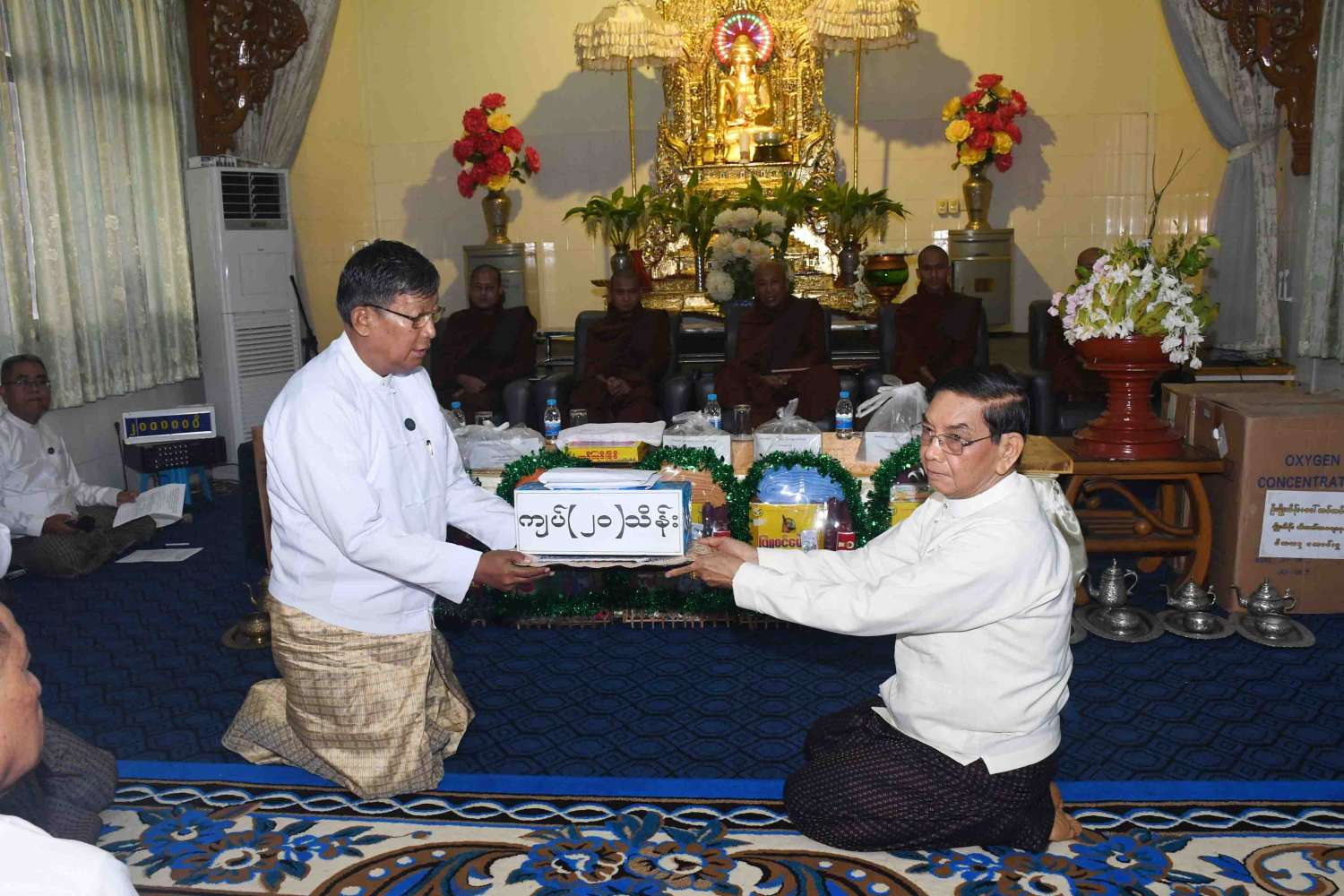 ယင်းနောက် ပြည်ထောင်စုဝန်ကြီးနှင့် တိုင်းဒေသကြီးဝန်ကြီးချုပ်တို့က အမှာစကားများပြောကြားကြပြီး ပြည်ထောင်စုဝန်ကြီးက ဂိလာနသံဃာဆောင်သို့သွားရောက်ကာ ဆေးရုံတက်ရောက်ကုသနေသော သံဃာတော်(၂၈)ပါး၊ သီလရှင်(၂)ပါးတို့ကို ဆေးပစ္စည်းနဝကမ္မအတွက် အလှူငွေများဆက်ကပ်လှူဒါန်းသည်။