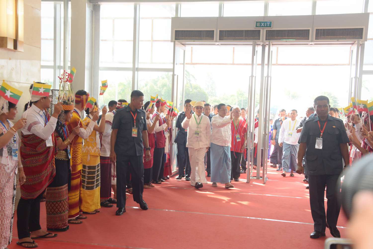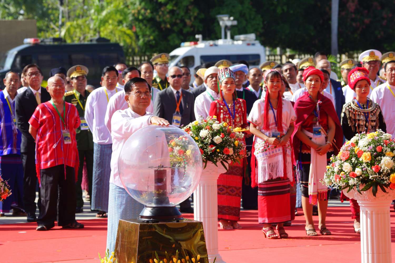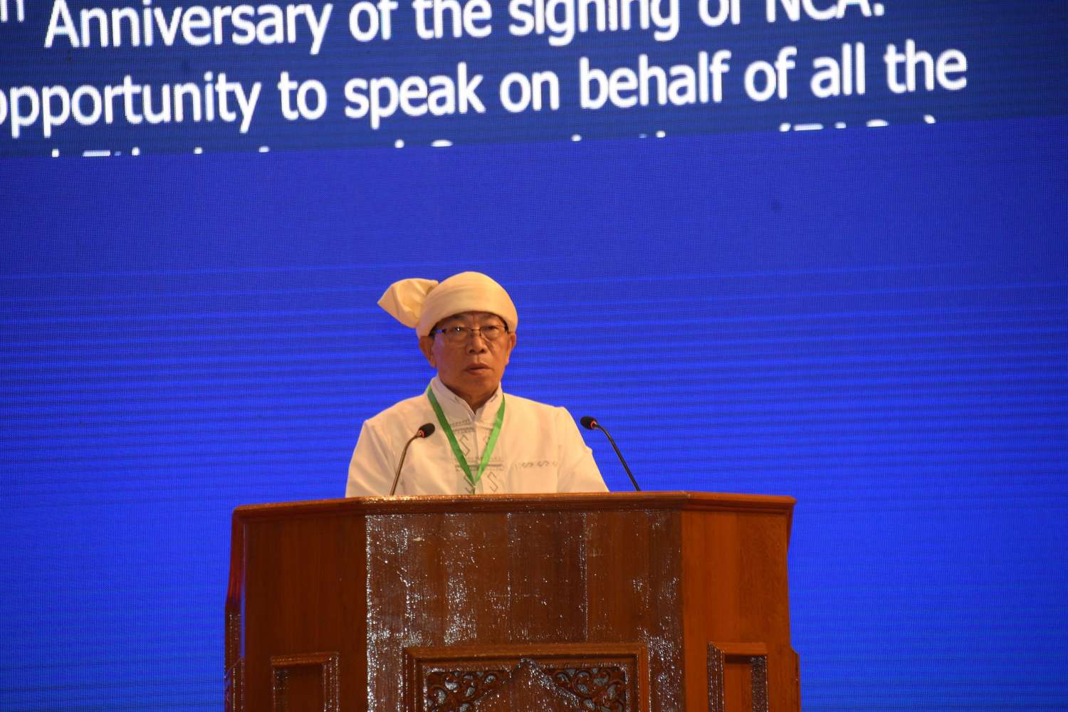 တစ်နိုင်ငံလုံး ပစ်ခတ်တိုက်ခိုက်မှု ရပ်စဲရေး သဘောတူစာချုပ် (NCA) (၈) နှစ်မြောက် နှစ်ပတ်လည်နေ့ အခမ်းအနားကို ယနေ့နံနက်ပိုင်းတွင် နေပြည်တော်ရှိ မြန်မာအပြည်ပြည်ဆိုင်ရာ ကွန်ဗင်းရှင်းဗဟိုဌာန-၂(MICC-2)၌ ကျင်းပရာ နိုင်ငံတော် စီမံအုပ်ချုပ်ရေးကောင်စီဥက္ကဋ္ဌ ၊ နိုင်ငံတော်ဝန်ကြီးချုပ်၊ တပ်မတော်ကာကွယ်ရေးဦးစီးချုပ် ဗိုလ်ချုပ်မှူးကြီး မင်းအောင်လှိုင် နှင့် နိုင်ငံတော်စီမံအုပ်ချုပ်ရေးကောင်စီအဖွဲ့ဝင်များ၊ ပြည်ထောင်စုဝန်ကြီးများ၊ တိုင်းရင်းသား လက်နက်ကိုင်အဖွဲ့အစည်းများမှ ပုဂ္ဂိုလ်များ၊ နိုင်ငံခြားသံရုံးများမှ သံတမန်များ၊ ဌာနဆိုင်ရာအကြီးအကဲများနှင့် အခြားဖိတ်ကြားထားသူများ တက်ရောက်ခဲ့ကြသည်။