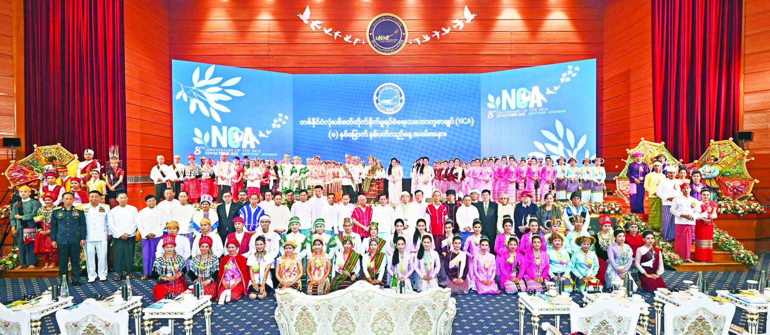 တစ်နိုင်ငံလုံးပစ်ခတ်တိုက်ခိုက်မှုရပ်စဲရေးသဘောတူစာချုပ် (NCA) ကို ၂၀၁၅ ခုနှစ် အောက်တိုဘာ ၁၅ ရက်တွင် အစိုးရ၊ လွှတ်တော်၊ တပ်မတော်နှင့် တိုင်းရင်းသားလက်နက်ကိုင်အဖွဲ့ ၈ ဖွဲ့တို့က ကုလသမဂ္ဂအပါအဝင် နိုင်ငံတကာသံတမန်များနှင့် အသိသက်သေများ၊ ပြည်တွင်းအသိသက်သေများရှေ့မှောက်တွင် လက်မှတ်ရေးထိုးခဲ့ခြင်းဖြစ်ကြောင်း၊ ၂၀၁၈ ခုနှစ် ဖေဖော်ဝါရီ ၁၃ ရက်တွင် မွန်ပြည်သစ်ပါတီနှင့် လားဟူဒီမိုကရက်တစ်အစည်းအရုံးတို့ ထပ်မံပါဝင်လက်မှတ်ရေးထိုးခဲ့ကြောင်း၊ NCA စာချုပ်သည် တစ်ဦးတစ်ယောက်တစ်ဖွဲ့တည်းက ရေးဆွဲထားခြင်းမျိုးမဟုတ်ဘဲ တိုင်းရင်းသားလက်နက်ကိုင်အဖွဲ့အစည်းများ၏ လိုလားချက်များနှင့် အဆိုပြုချက်များကိုမူတည်၍ နိုင်ငံတော်အစိုးရ၊ လွှတ်တော်၊ တပ်မတော်နှင့် တိုင်းရင်းသားလက်နက်ကိုင်အဖွဲ့အစည်းများ အကြိမ်ကြိမ်ဆွေးနွေးညှိနှိုင်း သဘောတူရေးဆွဲထားသည့် စာချုပ်တစ်ခုဖြစ်ကြောင်း၊ NCA စာချုပ်လက်မှတ်ရေးထိုးခြင်း နှစ်ပတ်လည်နေ့များကို ၄ နှစ်ဆက်တိုက်ကျင်းပနိုင်ခဲ့ပြီး ကိုဗစ်-၁၉ ရောဂါ ဖြစ်ပွားမှုကြောင့် ၂၀၂၀ ပြည့်နှစ် (၅) နှစ်မြောက် နှစ်ပတ်လည်နေ့ကို အခမ်းအနားကျင်းပနိုင်ခဲ့မှုမရှိသော်လည်း သဝဏ်လွှာများအပြန်အလှန်ပေးပို့၍ နှစ်ပတ်လည်နေ့ကို ဂုဏ်ပြုခဲ့ပါကြောင်း၊ ၂၀၂၁ ခုနှစ်နှင့် ၂၀၂၂ ခုနှစ်တွင်နှစ်ပတ်လည်နေ့များကို ပြန်လည်ကျင်းပခဲ့ပြီး နိုင်ငံတော်စီမံအုပ်ချုပ်ရေးကောင်စီဥက္ကဋ္ဌ နိုင်ငံတော်ဝန်ကြီးချုပ် အမျိုးသားစည်းလုံးညီညွတ်ရေးနှင့် ငြိမ်းချမ်းရေးဖော်ဆောင်မှု ဗဟိုကော်မတီဥက္ကဋ္ဌ၏ လမ်းညွှန်ချက်ဖြင့် ယနေ့တွင်ကျရောက်သည့် တစ်နိုင်ငံလုံးပစ်ခတ်တိုက်ခိုက်မှုရပ်စဲရေး သဘောတူစာချုပ် (NCA) (၈) နှစ်မြောက် နှစ်ပတ်လည်နေ့အခမ်းအနားအား နိုင်ငံတော်အဆင့် ခမ်းနားထည်ဝါစွာဖြင့် ကျင်းပပြုလုပ်ခဲ့ခြင်းဖြစ်ကြောင်း သတင်းရရှိသည်။